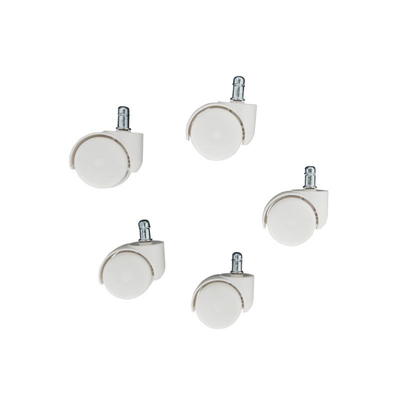 Комплект от 5 полипропиленови колела за офис стол. Резервните части не са стандартни и не са съвместими с всички модели офис столове от различни производители.