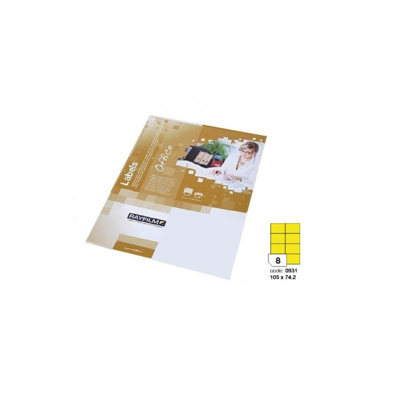 Етикети Rayfilm R0131, 105 x 74.2 мм, 8 бр./лист, 20 л. флуор. жълти 0601501