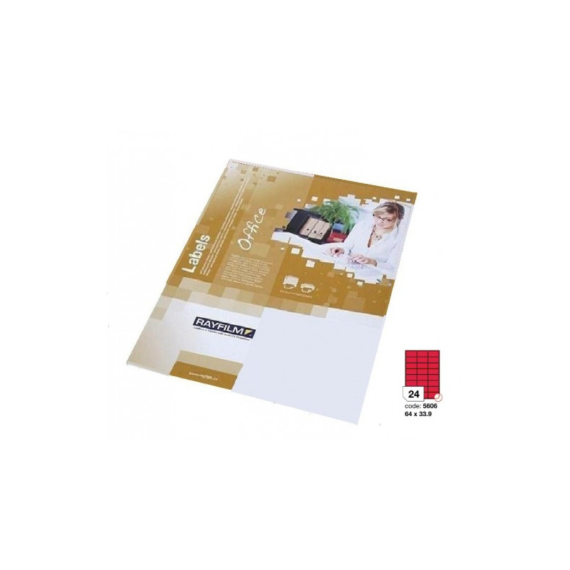 Етикети Rayfilm R0132, 64 x 33.9 мм, 24 бр./лист, 20 л. флуор. червен 0601843