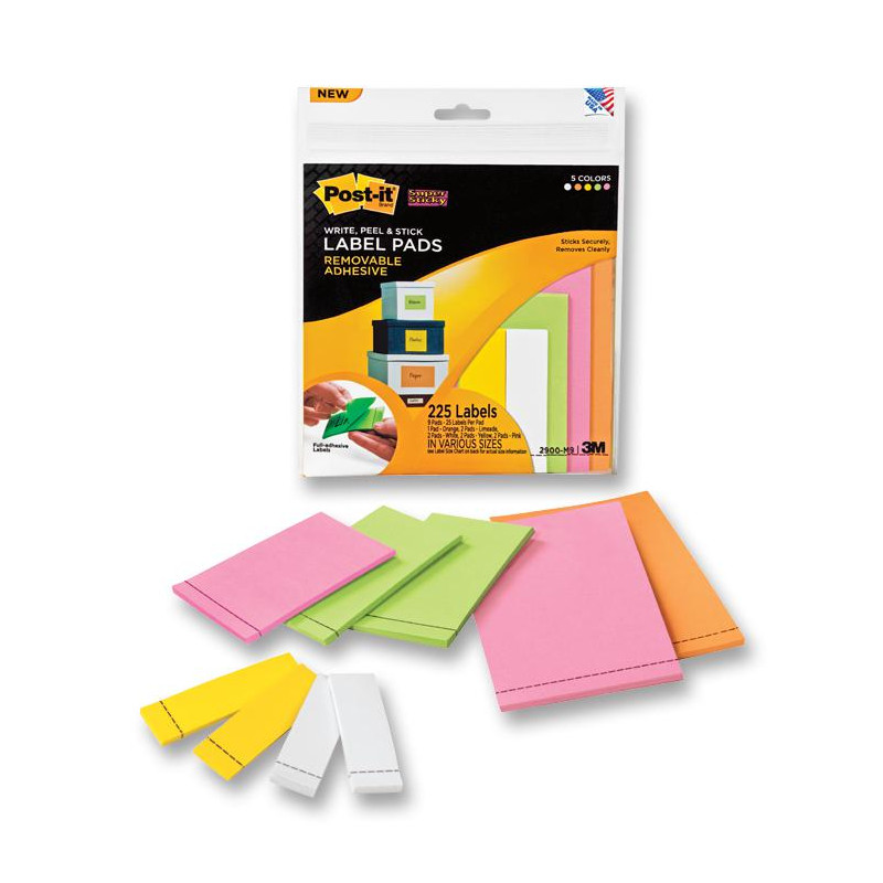 Цветни лепящи етикети със специалното лепило Post-it Super Sticky.