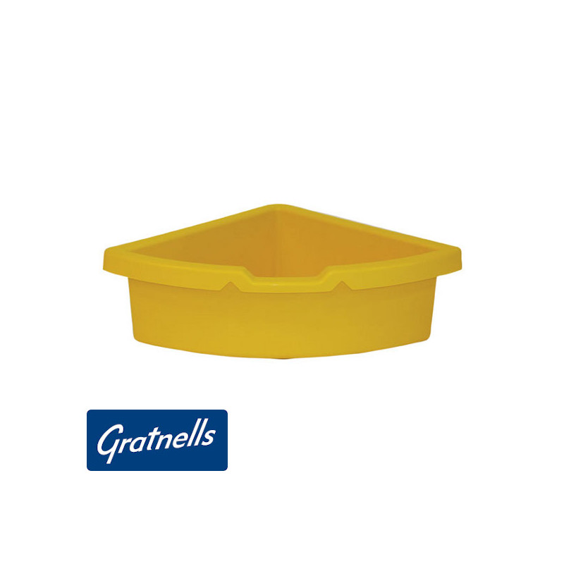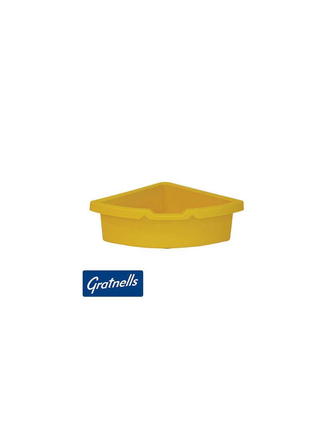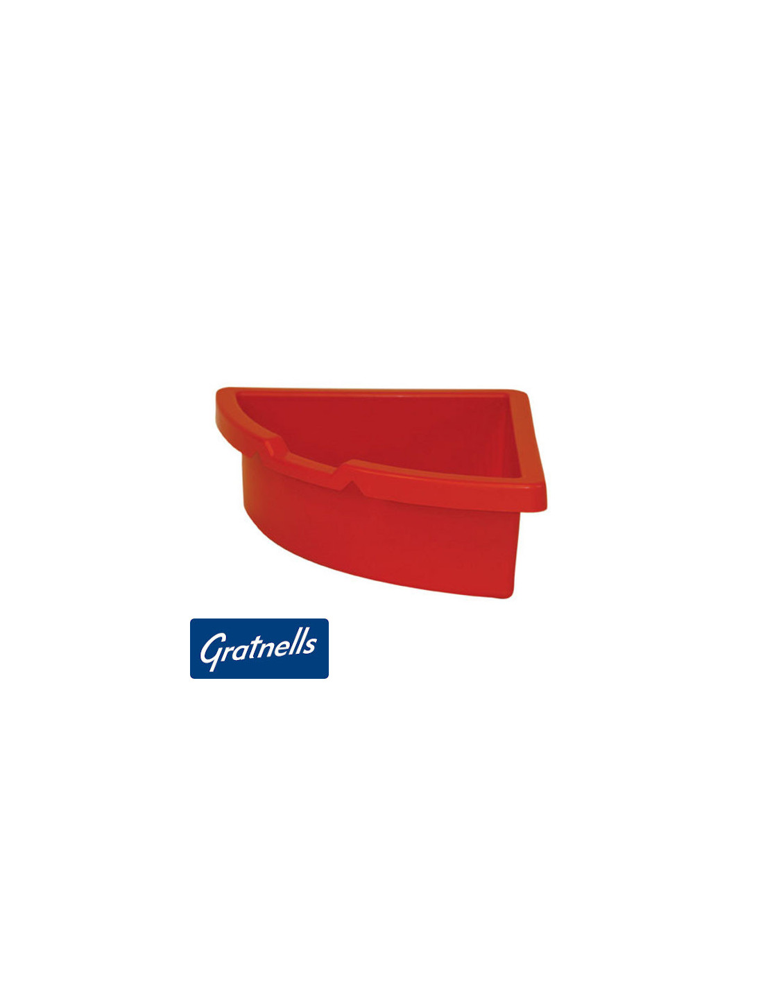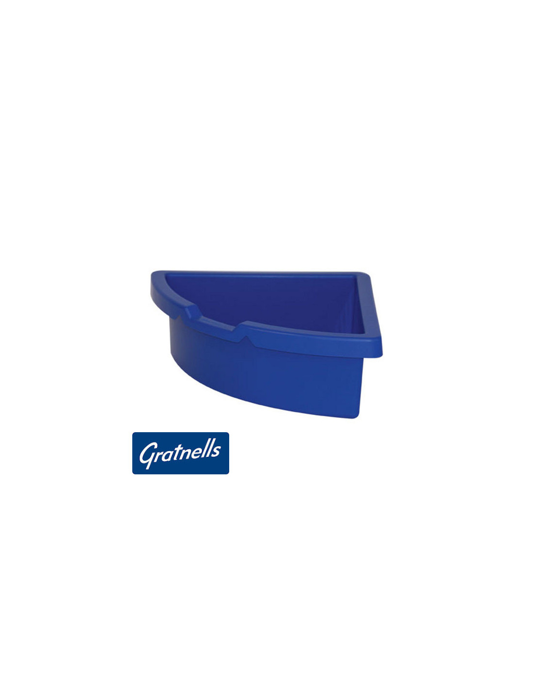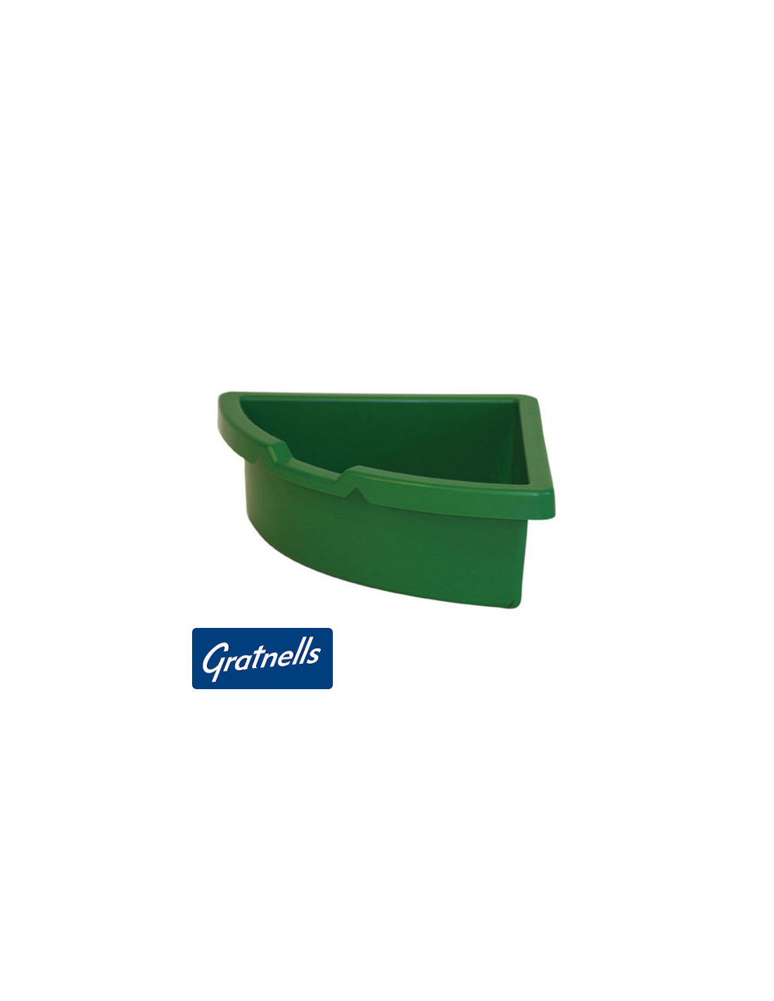 Ъглов контейнер с гладка вътрешна повърхност от полипропилен. Проектиран за висока издръжливост със специално оребряване. Решава проблемите с използване на ъглови пространства. Предлага се с конзола за монтаж на стена. Удобен за вграждане в ъглови мебели. Създаден за подреждане и съхранение на различни пособия. Тестван по BSI за тежка образователна употреба. Всички продукти са напълно рециклируеми.