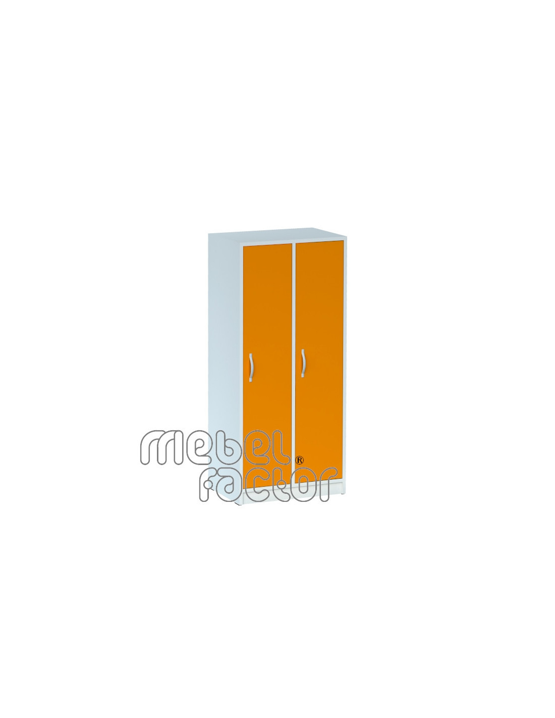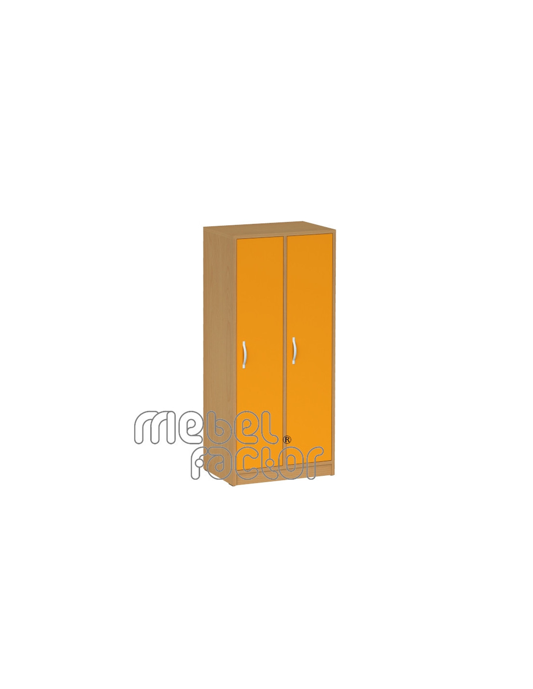 Двукрилен гардероб за детска градина с цели врати. Размери 58х37см, Н=130см. Корпус и врати от ламинирано ПДЧ с дебелина 18мм. Кант 0,5мм за корпуса и вратите. Гръб HDF 3мм. Опция за ключалки на вратите. Две закачалки във всяко от крилата. Декори на ламинирано ПДЧ от фирмения картел. Произведено в България.