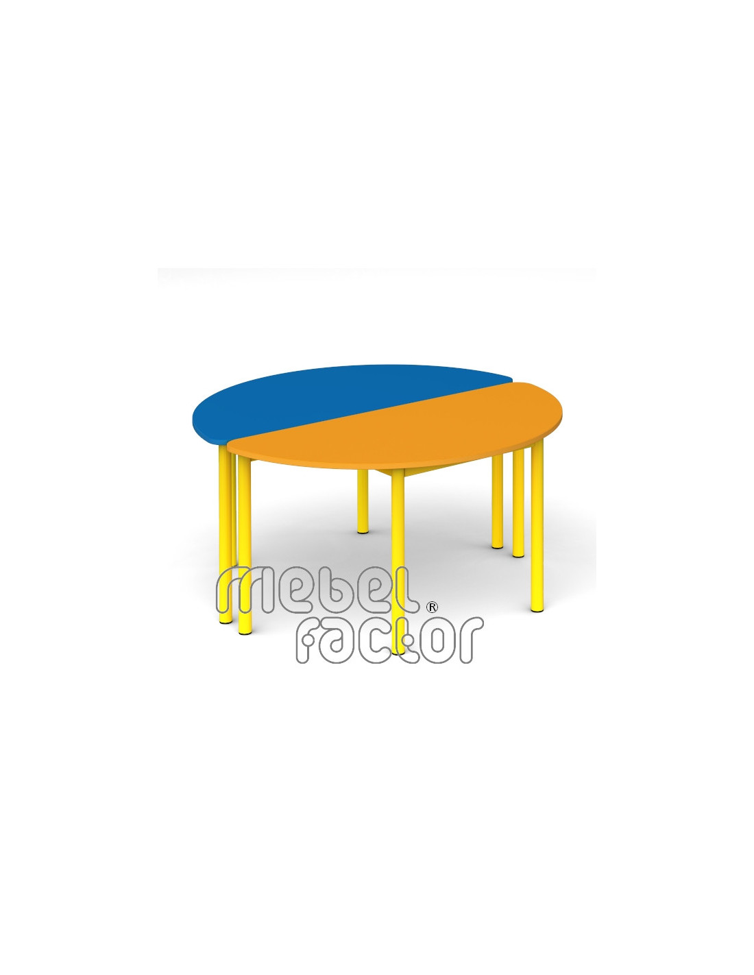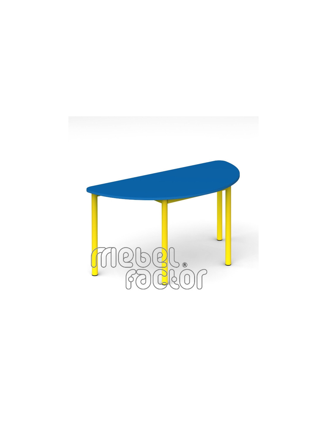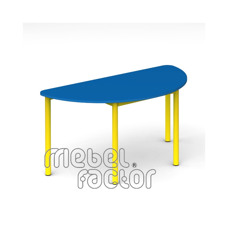 Детска модулна маса РОНДО, размер 3. Подходяща за възраст до 7 години. Плот полукръг с размери 120х60см./Н59см, кант 2,0мм. Обезопасени, заоблени ъгли на плота. Декори на ламинирано ПДЧ от фирмения картел. Заварена конструкция с крака от тръба 40мм. Царги от правоъгълен профил 40х20мм. Полимерно, прахово покритие в цветове по RAL. Произведено в България. Продуктът отговаря на стандарт БДС EN 1729 - "Мебели. Столове и маси за учебни заведения."