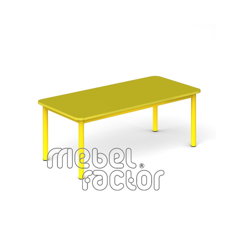 Детска маса РОНДО, размер 1. Подходяща за възраст до 3 години. Плот с размери 120х60/Н46см., кант 2,0мм. Обезопасени, заоблени ъгли на плота. Декори на ламинирано ПДЧ от фирмения картел. Заварена конструкция с крака от тръба 40мм. Царги от правоъгълен профил 40х20мм. Полимерно, прахово покритие в цветове по RAL. Произведено в България. Продуктът отговаря на стандарт БДС EN 1729 - "Мебели. Столове и маси за учебни заведения."