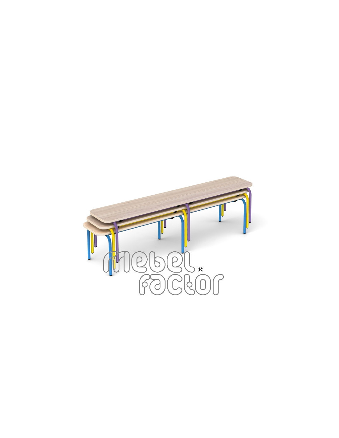 Детска пейка САВУЛЕН 150см, размер 3. Подходяща за деца на възраст от 5 до 7 години. Седалка с рамери 150х30/Н35см от ЛПДЧ 18мм. Декори на ламинирано ПДЧ от фирмения картел. Конструкция от стоманена тръба 21,3мм. Полимерно, прахово покритие в цветове по RAL. Стифиране до 5 броя. Произведено в България. Продуктът отговаря на стандарт БДС EN 1729 - "Мебели. Столове и маси за учебни заведения."
