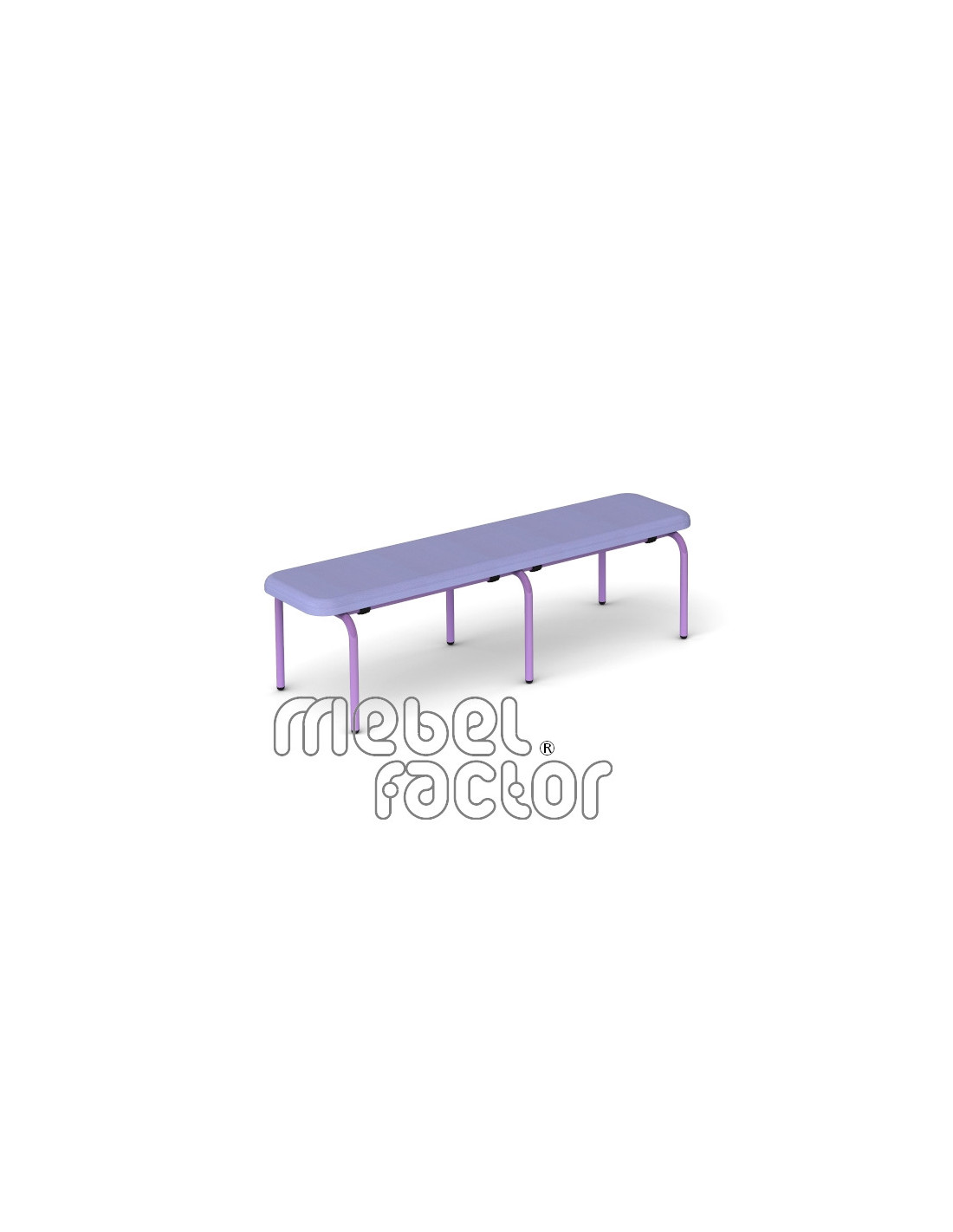 Тапицирана, детска пейка САВУЛЕН 120см, размер 2. Подходяща за деца на възраст от 4 до 6 години. Тапицирана седалка с размери 120х28/Н31см. Десени за дамаски и еко-кожи от фирмения картел. Конструкция от стоманена тръба 21,3мм. Полимерно, прахово покритие в цветове по RAL. Стифиране до 4 броя. Произведено в България. Продуктът отговаря на стандарт БДС EN 1729 - "Мебели. Столове и маси за учебни заведения."