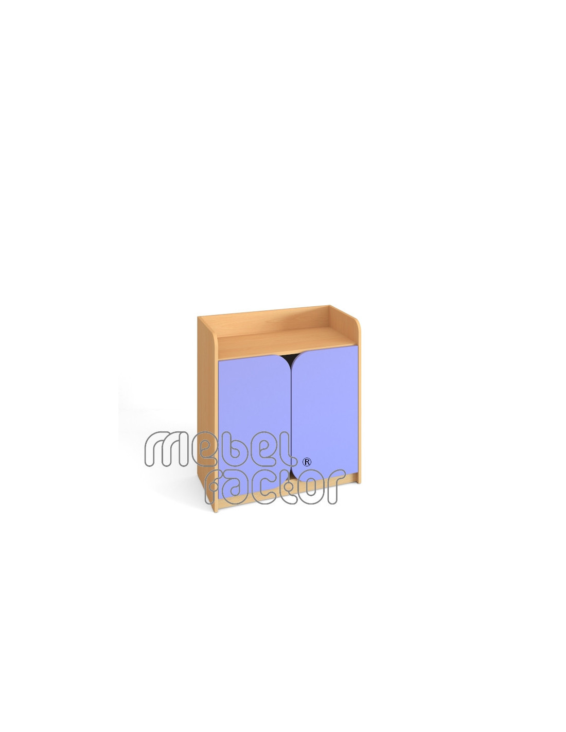 Двоен, детски шкаф с три рафта и врати. Обезопасени, заоблени ъгли на външните елементи. Разстояние между рафтовете 32см. Корпус от 18мм ламинирано ПДЧ с кант 2,0мм. Гръб от ламиниран HDF 3мм. Декори на ламинирано ПДЧ от фирмения картел. Размери 80х39х86,5см. Произведено в България.