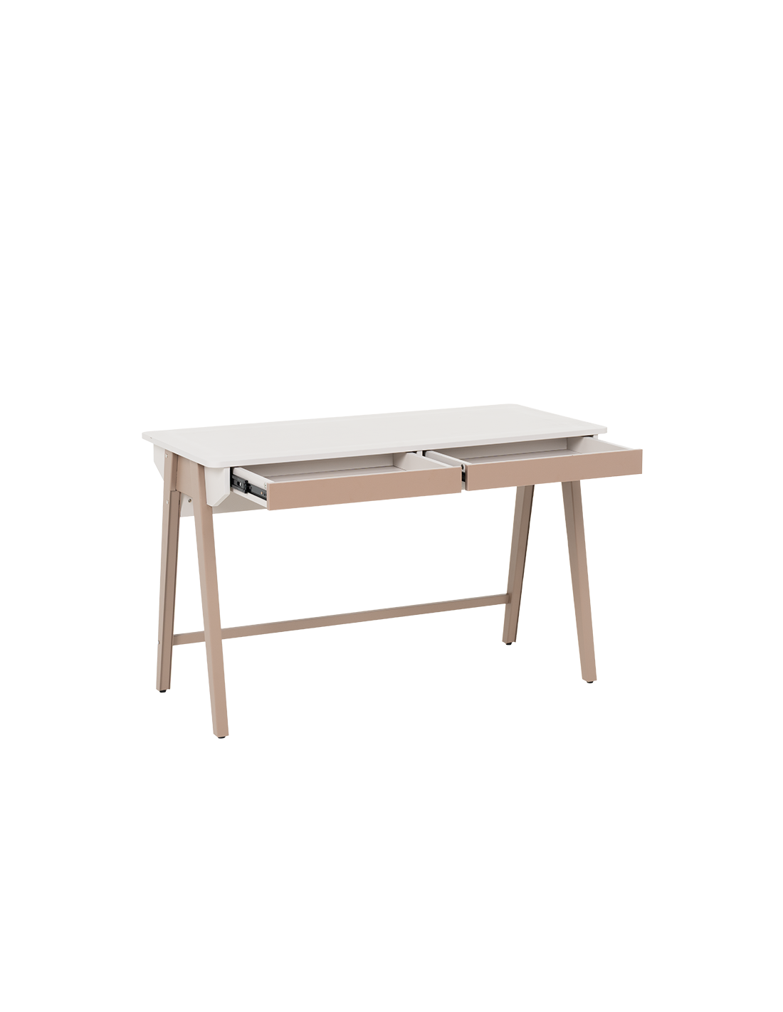 Бюро Makati впечатлява с модерен дизайн и прецизна изработка, които го правят отличен избор както за домашен офис, така и за младежка стая. Плотът в мек цвят е с приятна на допир повърхност и предлага достатъчно пространство за работа и учене. Двете чекмеджета се отварят плавно и без усилие, предоставяйки удобно място за съхранение на принадлежности, тетрадки или офис материали. Цветовата комбинация в натурални нюанси създава усещане за уют и елегантност, без да натоварва интериора. Пълна информация за размерите и характеристиките на модела ще намерите в таблицата в таб/поле „Техническа информация“.