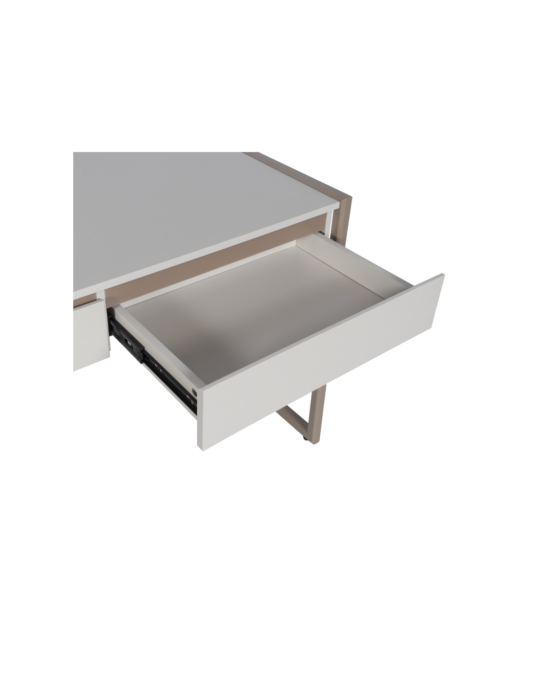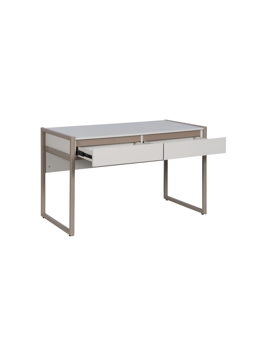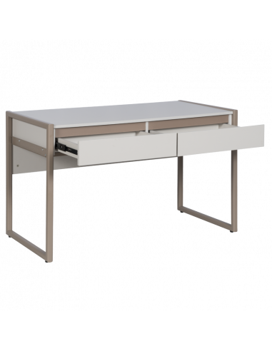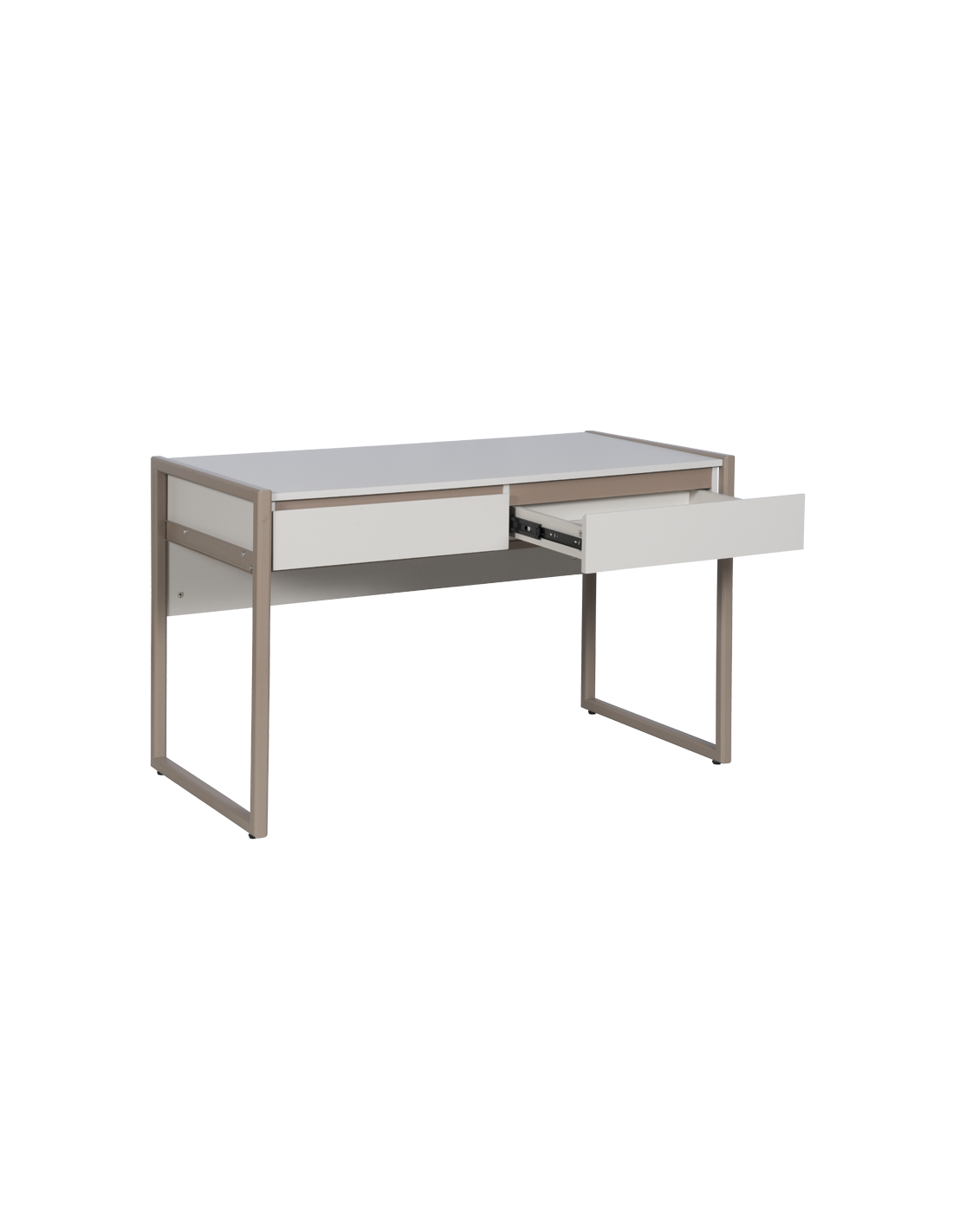 Бюро SUBIC съчетава елегантен дизайн и практичност. Изработено е от ПДЧ с меламиново покритие и метална конструкция с прахово боядисани крака, което осигурява стабилност и дълготрайност. Разполага с две чекмеджета за съхранение на документи и офис принадлежности, а изчистените линии го правят подходящо както за домашен офис, така и за работна среда. Пълна информация за размерите и характеристиките на модела ще намерите в таблицата в таб/поле 'Техническа информация'.