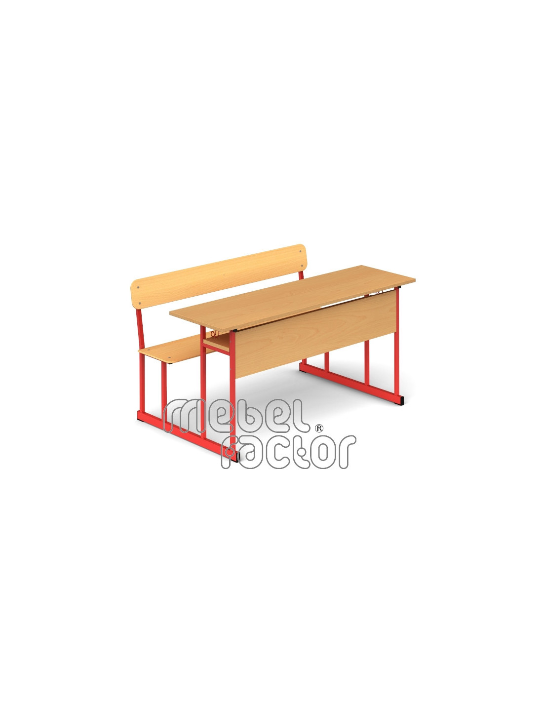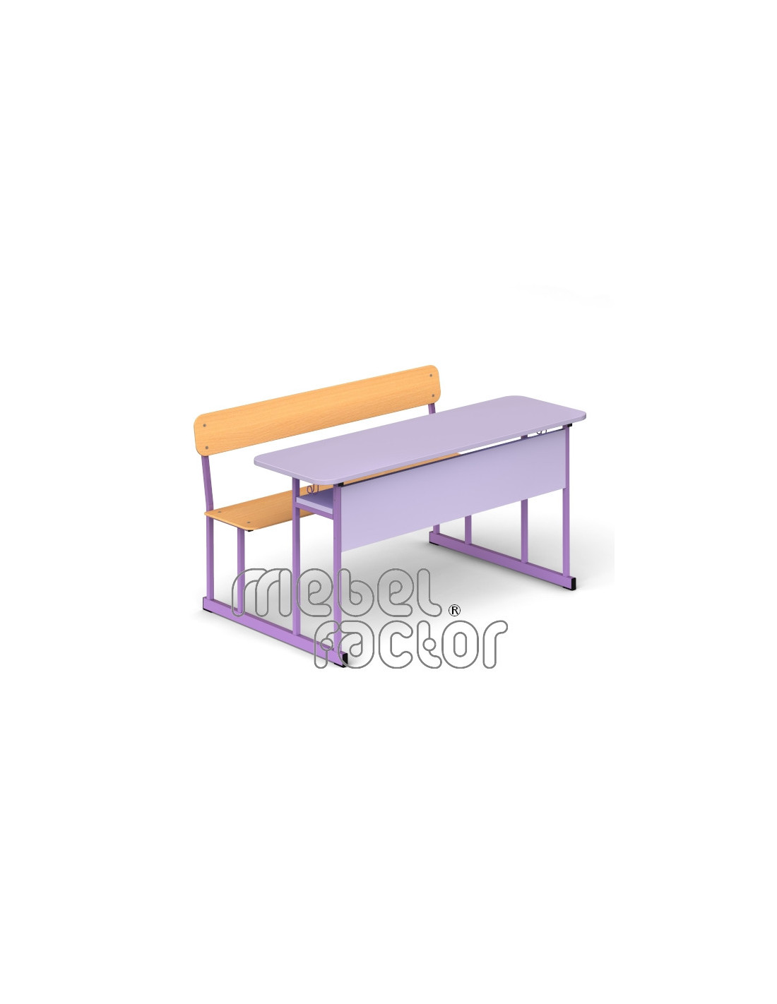 Двуместен ученически чин УНИВЕРСАЛ, размер 4. Вариант със заоблени ъгли на плота. Подходящ за възраст от 7 до 10 години. Плот с размери 120х45см., кант 2,0мм. Височина на плота 65см., височина на седалката 38см. Чело и рафт от ламинирано ПДЧ с дебелина 18мм. Седалка и облегалка от лакиран шперплат 8мм. Декори на ламинирано ПДЧ от фирмения картел. Заварена конструкция от квадратен профил 20х20мм. Подсилваща метална царга под плота и седалката. Включени закачалки за ученическа чанта. Полимерно, прахово покритие в цветове по RAL. Произведено в България. Продуктът отговаря на стандарт БДС EN 1729 - "Мебели. Столове и маси за учебни заведения."