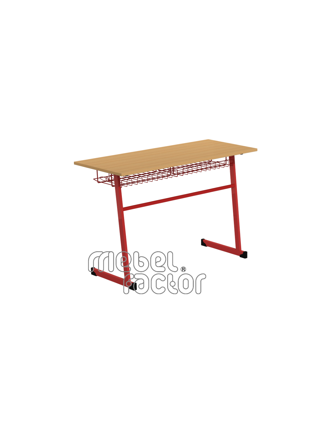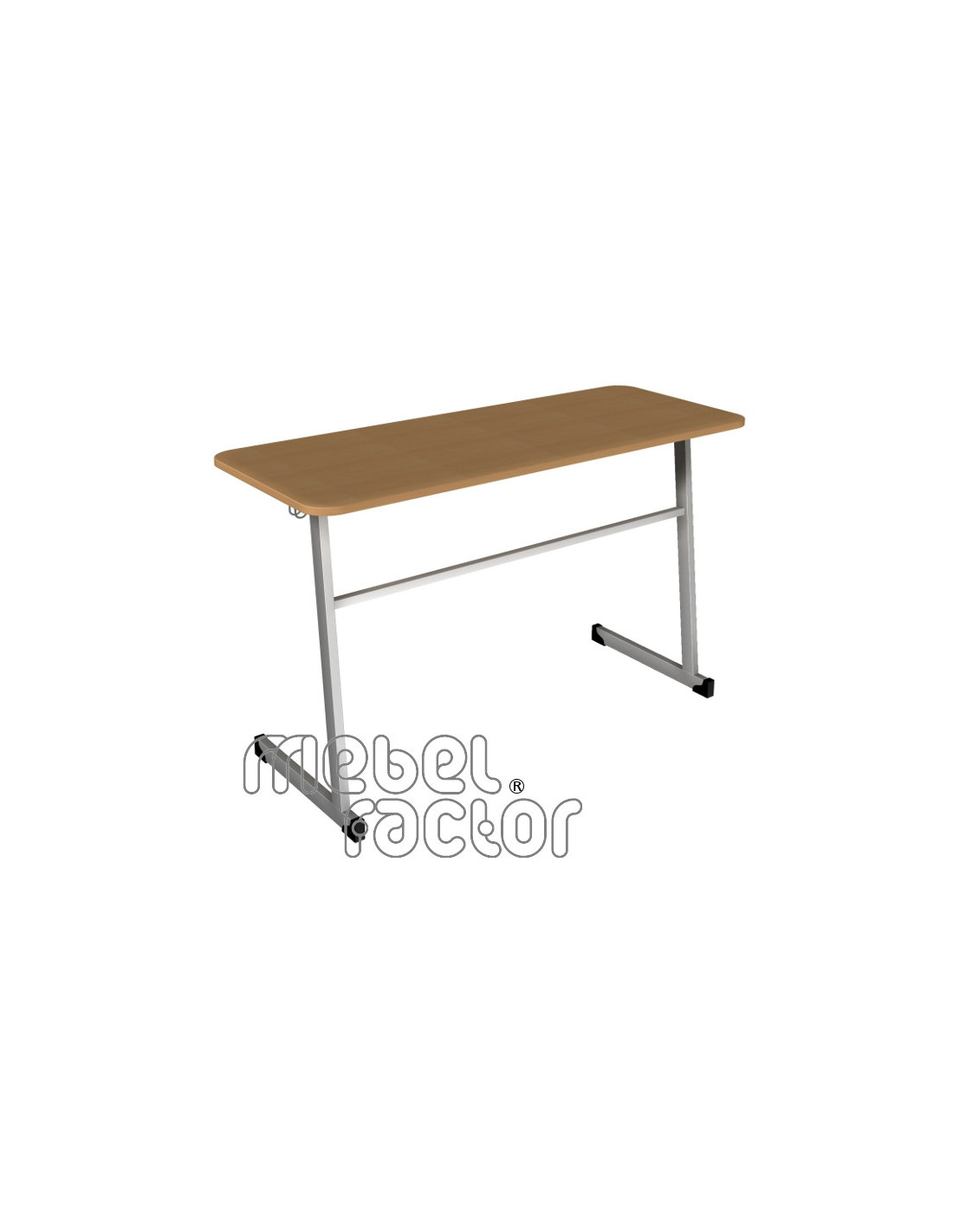 Двуместна ученическа маса ТИНА, размер 6. Вариант със заоблени ъгли на плота. Подходяща за възраст над 14 години. Плот с размери 120х50/Н76см., кант 2,0мм. Декори на ламинирано ПДЧ от фирмения картел. Заварена конструкция от тръба 40х20мм. Включени 2 броя закачалки за ученическа чанта. Полимерно, прахово покритие в цветове по RAL. Произведено в България. Продуктът отговаря на стандарт БДС EN 1729 - "Мебели. Столове и маси за учебни заведения."