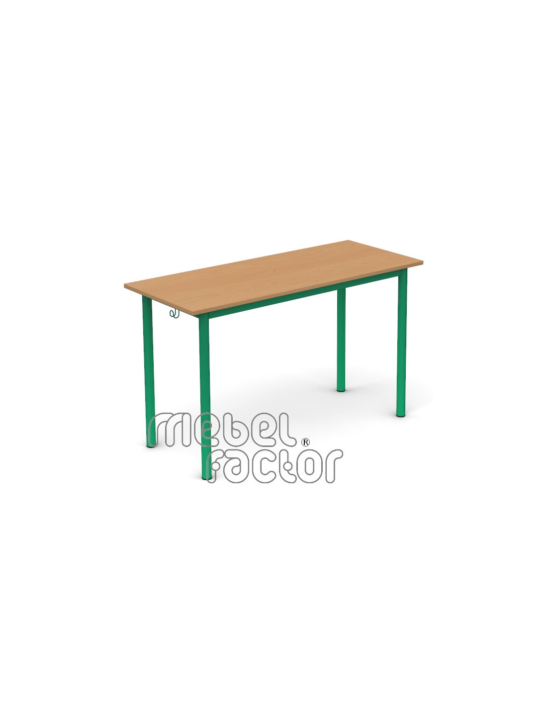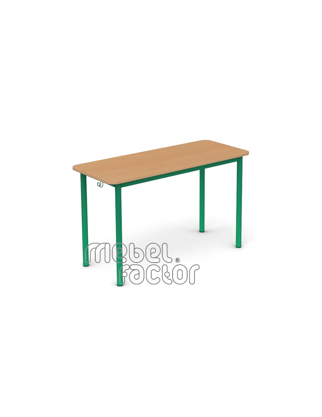 Двуместна ученическа маса РОНДО, размер 5. Вариант със заоблени ъгли на плота. Подходяща за възраст от 11 до 14 години. Плот с размери 120х50/Н71см., кант 2,0мм. Декори на ламинирано ПДЧ от фирмения картел. Заварена конструкция с крака от тръба 40мм. Включени 2 броя закачалки за ученическа чанта. Полимерно, прахово покритие в цветове по RAL. Произведено в България. Продуктът отговаря на стандарт БДС EN 1729 - "Мебели. Столове и маси за учебни заведения."