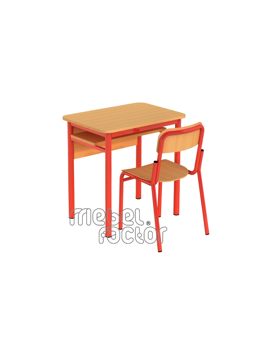 Едноместна ученическа маса РОНДО, размер 6. Вариант със заоблени ъгли на плота. Подходяща за възраст над 14 години. Плот с размери 70х50/Н76см., кант 2,0мм. Чело и рафт от ЛПДЧ с дебелина 18мм. Декори на ламинирано ПДЧ от фирмения картел. Заварена конструкция с крака от тръба 40мм. Включена закачалка за ученическа чанта. Полимерно, прахово покритие в цветове по RAL. Произведено в България. Продуктът отговаря на стандарт БДС EN 1729 - "Мебели. Столове и маси за учебни заведения."