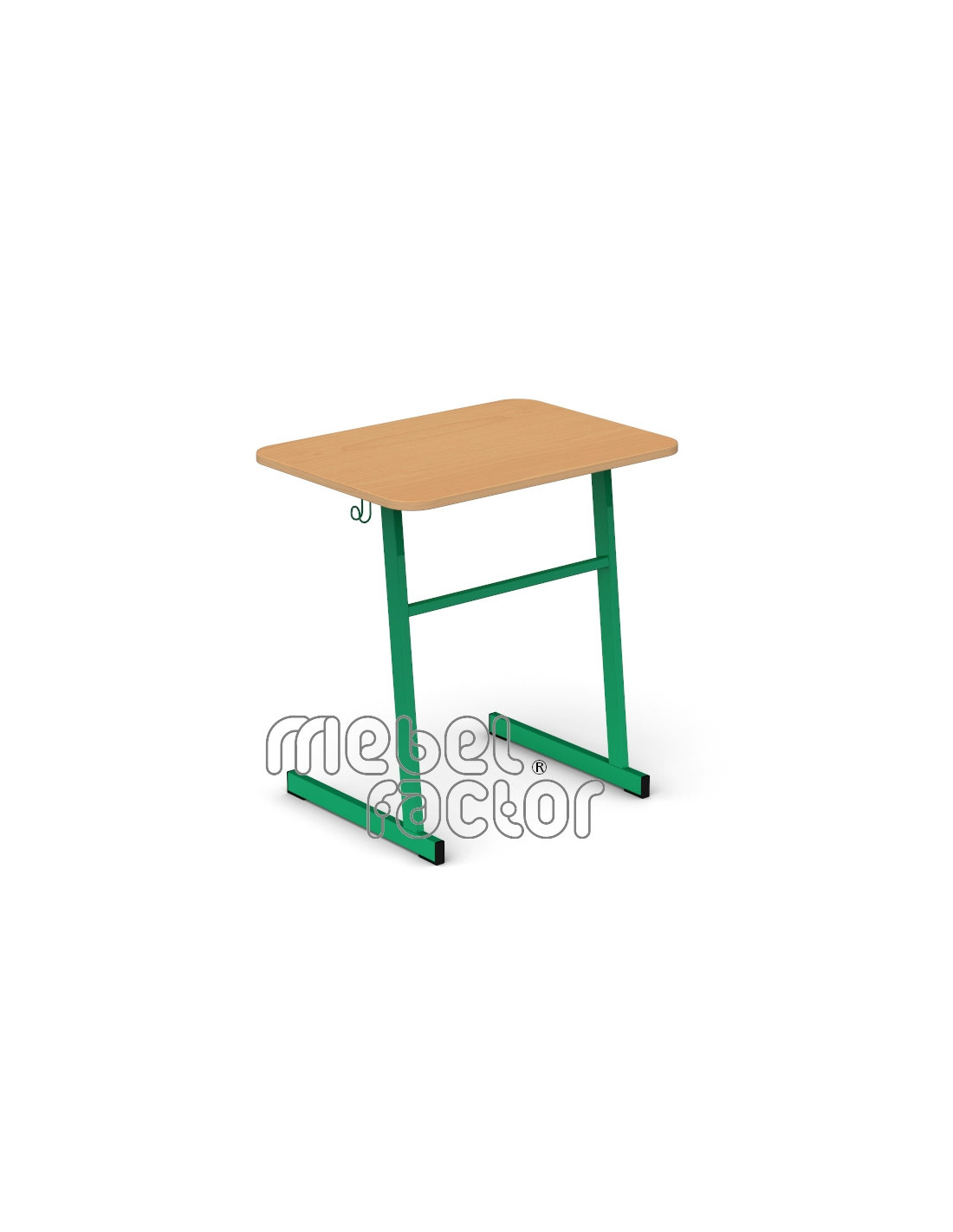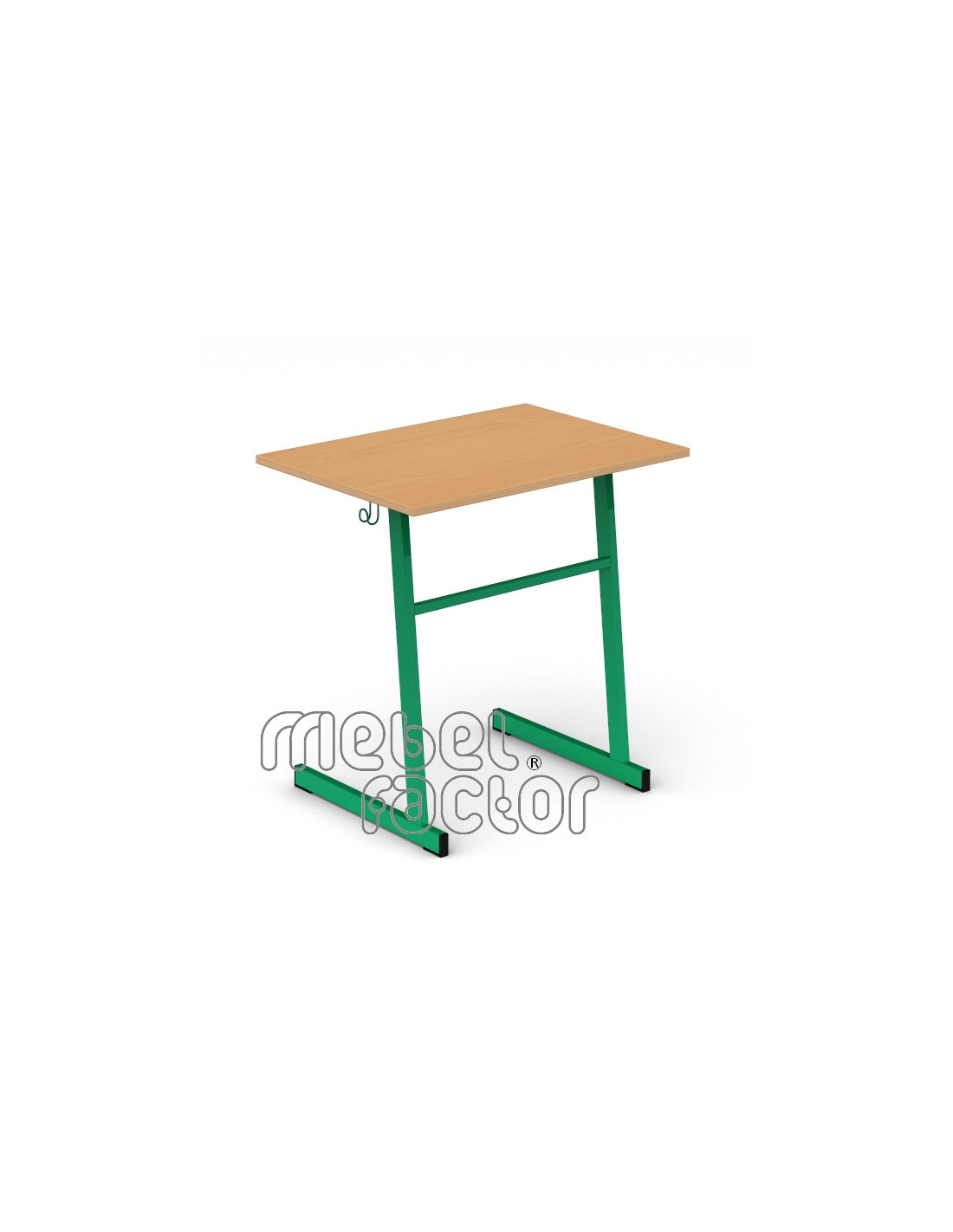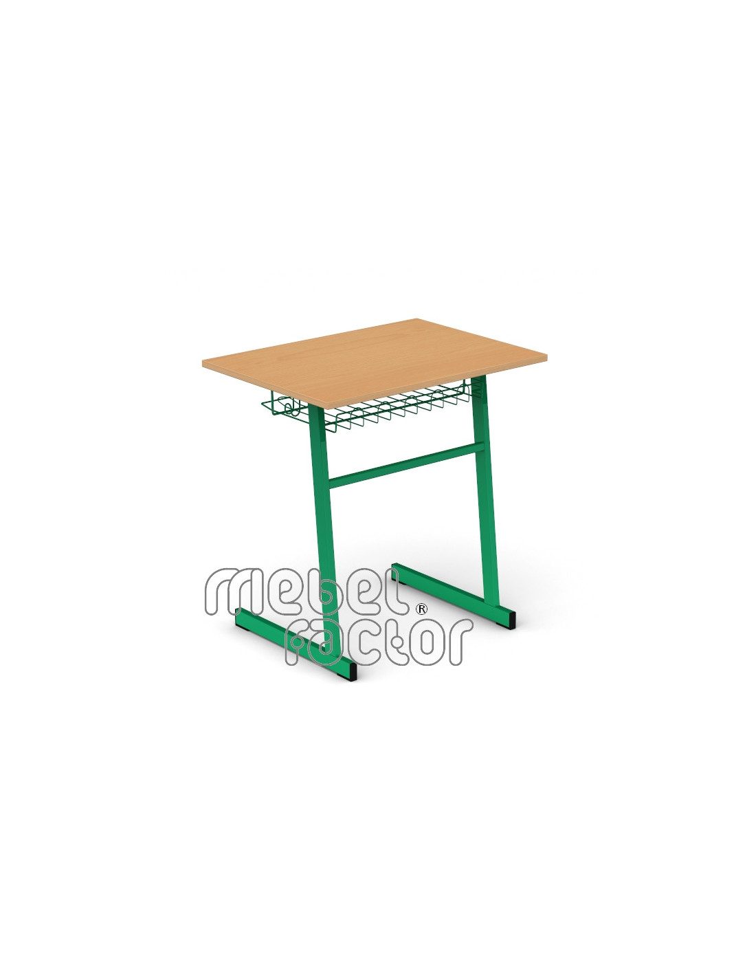 Едноместна ученическа маса ТИНА, размер 5. Варианти със заоблени ъгли на плота. Подходяща за възраст от 11 до 14 години. Плот с размери 70х50/Н71см., кант 2,0мм. Декори на ламинирано ПДЧ от фирмения картел. Заварена конструкция от правоъгълна тръба 40х20мм. Включена закачалка за ученическа чанта. Полимерно, прахово покритие в цветове по RAL. Произведено в България. Продуктът отговаря на стандарт БДС EN 1729 - "Мебели. Столове и маси за учебни заведения."