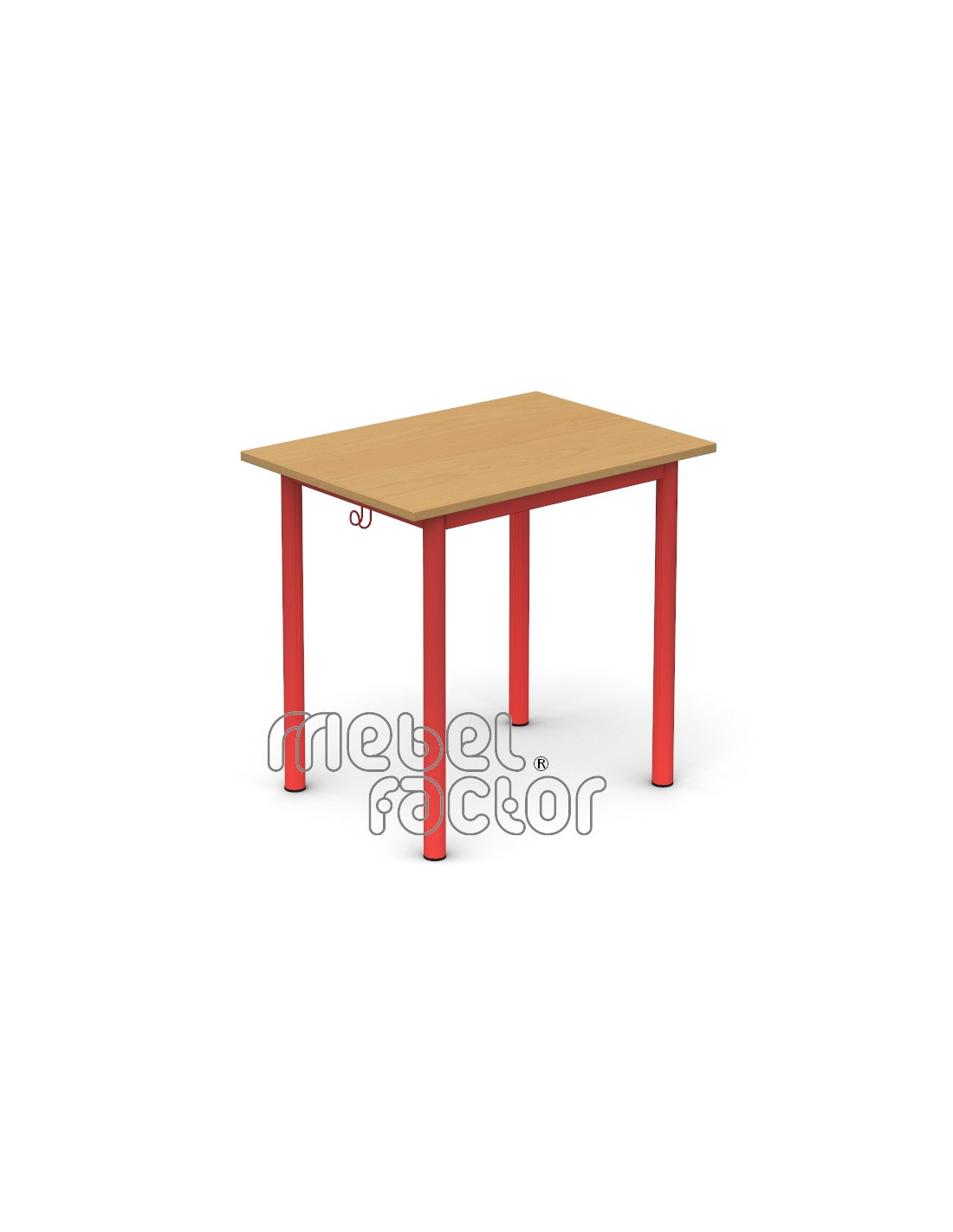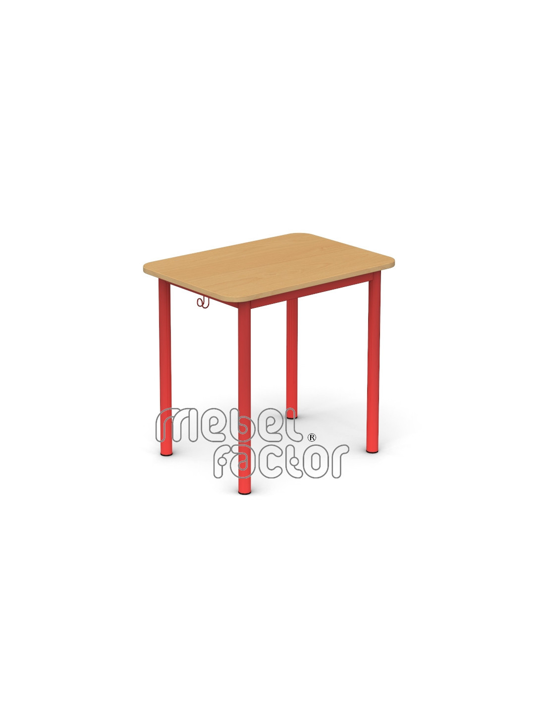 Едноместна ученическа маса РОНДО, размер 4. Вариант със заоблени ъгли на плота. Подходяща за възраст от 7 до 10 години. Плот с размери 70х50/Н65см., кант 2,0мм. Декори на ламинирано ПДЧ от фирмения картел. Заварена конструкция с крака от тръба 40мм. Включена закачалка за ученическа чанта. Полимерно, прахово покритие в цветове по RAL. Произведено в България. Продуктът отговаря на стандарт БДС EN 1729 - "Мебели. Столове и маси за учебни заведения."