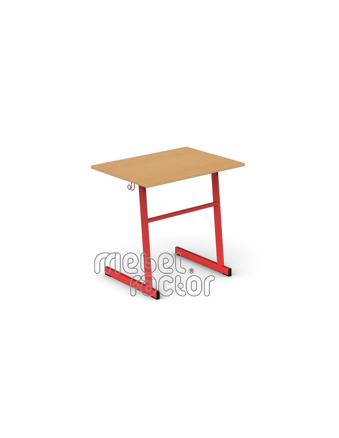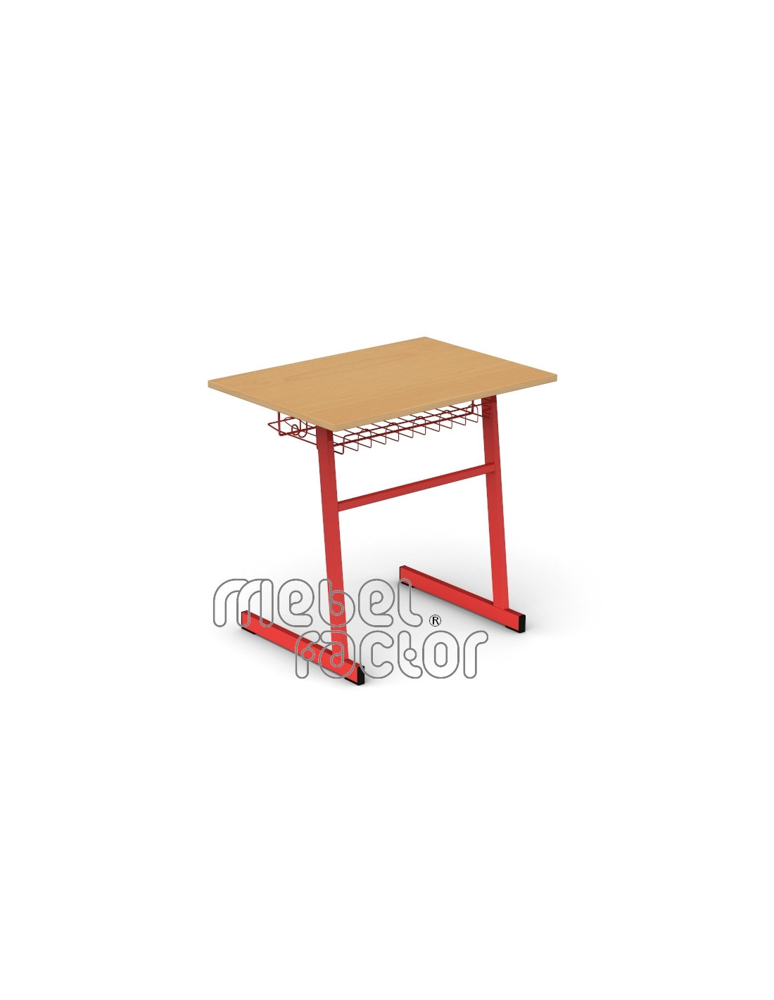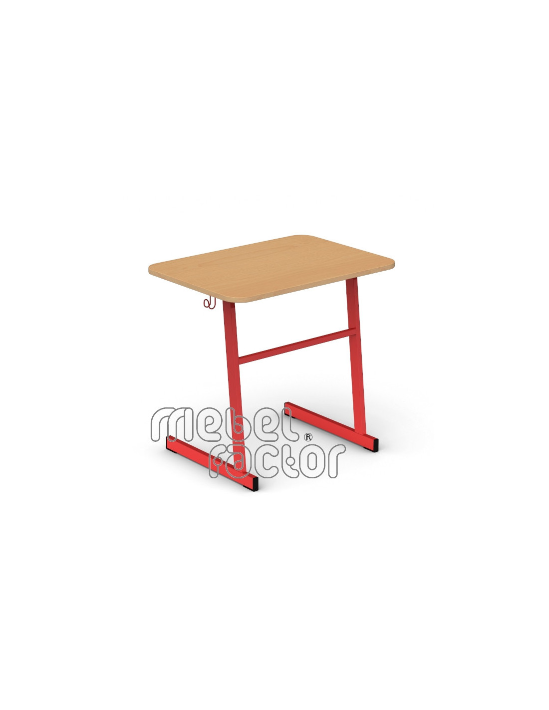 Едноместна ученическа маса ТИНА, размер 4. Варианти със заоблени ъгли на плота. Подходяща за възраст от 7 до 10 години. Плот с размери 70х50/Н65см., кант 2,0мм. Декори на ламинирано ПДЧ от фирмения картел. Заварена конструкция от правоъгълна тръба 40х20мм. Включена закачалка за ученическа чанта. Полимерно, прахово покритие в цветове по RAL. Произведено в България. Продуктът отговаря на стандарт БДС EN 1729 - "Мебели. Столове и маси за учебни заведения."