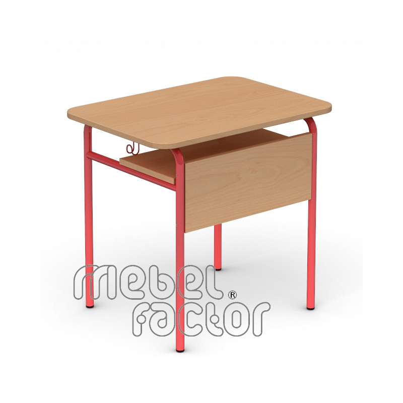 Едноместна ученическа маса САВУЛЕН, размер 5 Варианти със заоблени ъгли на плота. Подходяща за възраст от 7 до 10години. Плот с размери 70х50/Н65см., кант 2,0мм. Чело и рафт от ЛПДЧ с дебелина 18мм. Декори на ламинирано ПДЧ от фирмения картел. Заварена метална конструкция от тръба 25мм. Включена закачалка за ученическа чанта. Полимерно, прахово покритие в цветове по RAL. Произведено в България. Продуктът отговаря на стандарт БДС EN 1729 - "Мебели. Столове и маси за учебни заведения."
