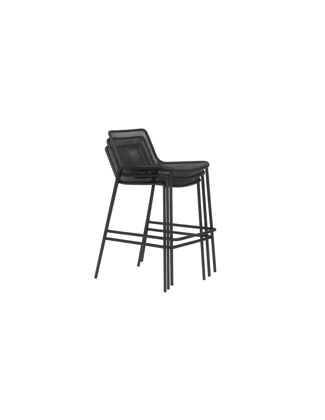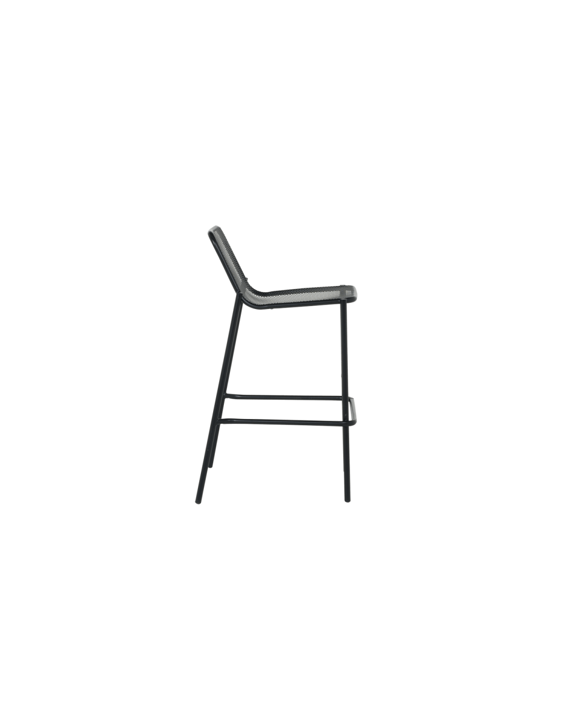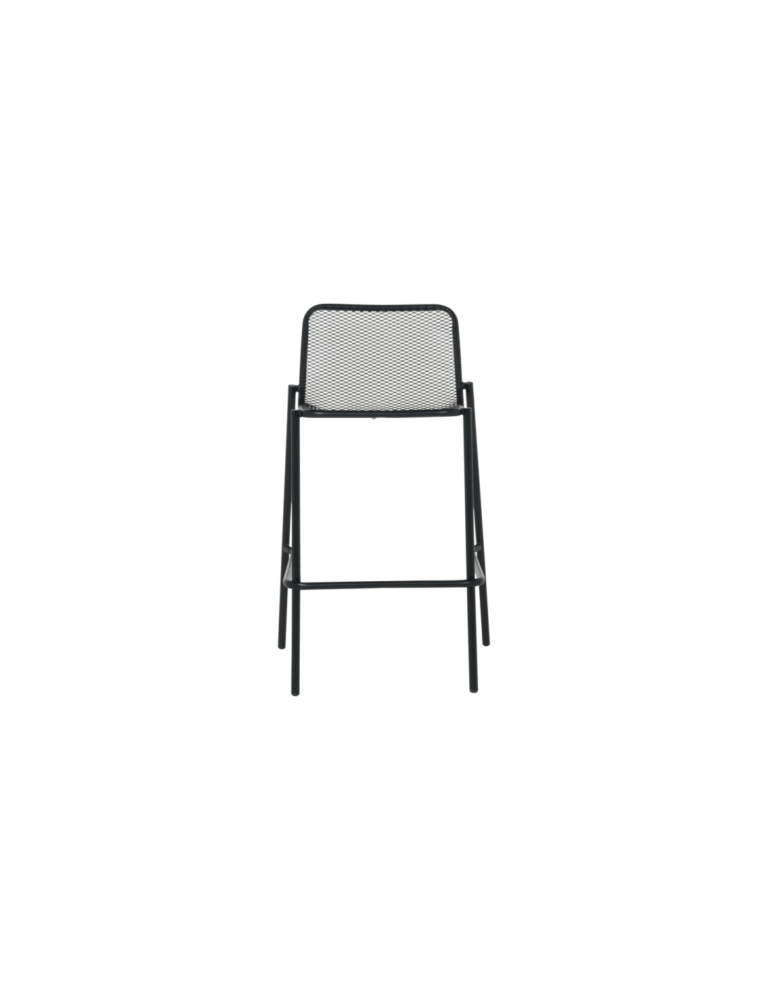 Кетъринг бар стол BAMA – черен впечатлява с изчистена индустриална визия и стабилна метална конструкция. Седалката и облегалката са изработени от метална мрежа, която осигурява проветривост и комфорт дори при продължителна употреба. Повърхностите са обработени със защитно покритие, устойчиво на корозия и атмосферни влияния, което го прави отличен избор за барове, тераси и събития на открито. Столът може да се стифира, което улеснява съхранението и спестява място, когато не се използва. Това го прави особено практичен за сезонна употреба или при нужда от повече бройки на ограничена площ.