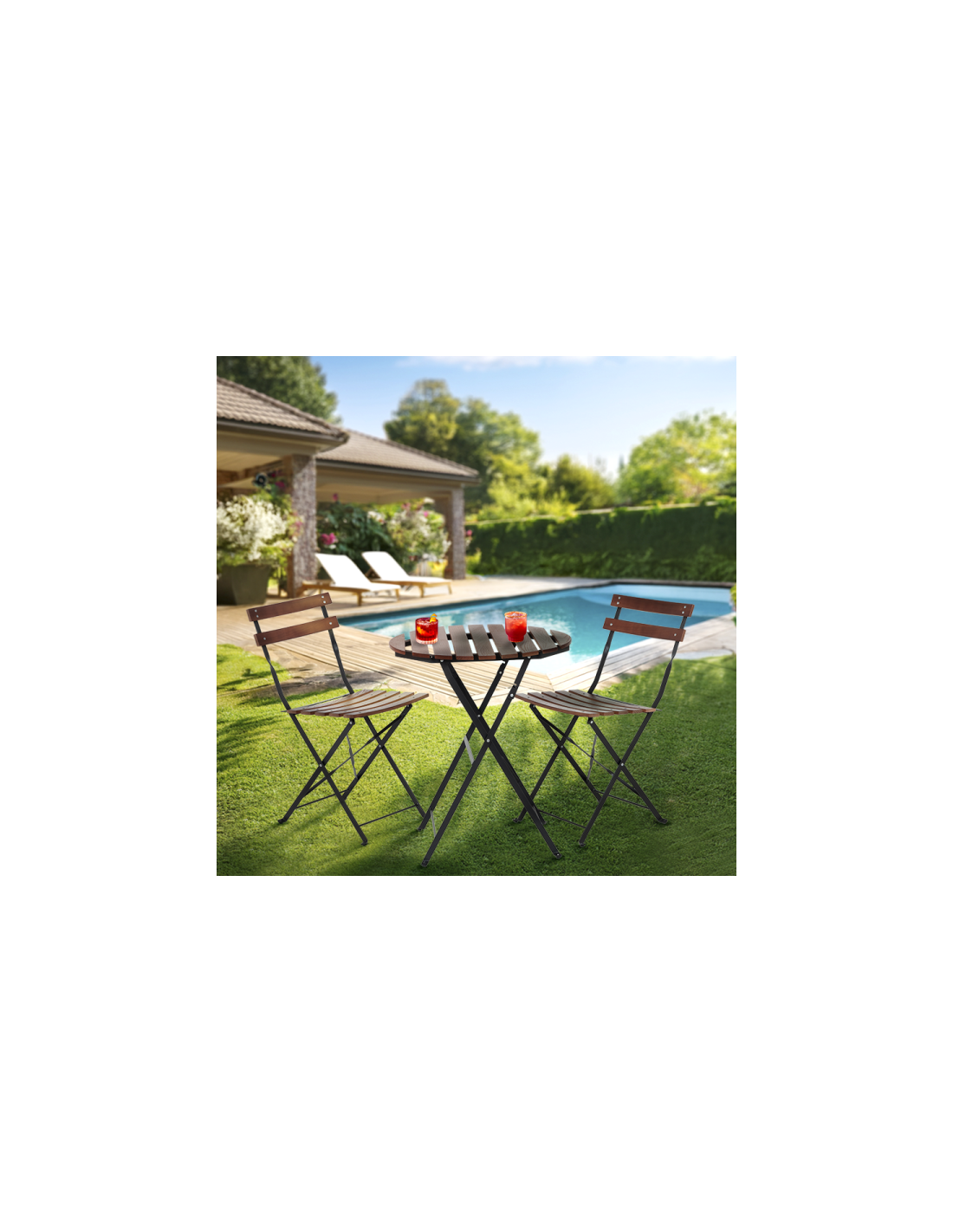 Сгъваемата маса KOKO е елегантен избор за тераса, градина или събития на открито. Плотът е от естествена ясенова дървесина – клас А, с UV защита, а металната конструкция е с антикорозионно покритие. Лесна за сгъване и съхранение. Може да се комбинира със сгъваем кетъринг стол GOMBE за хармоничен и стилен комплект за външна употреба.