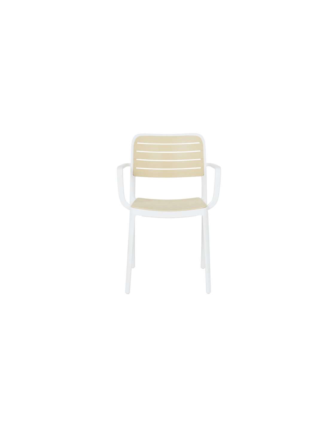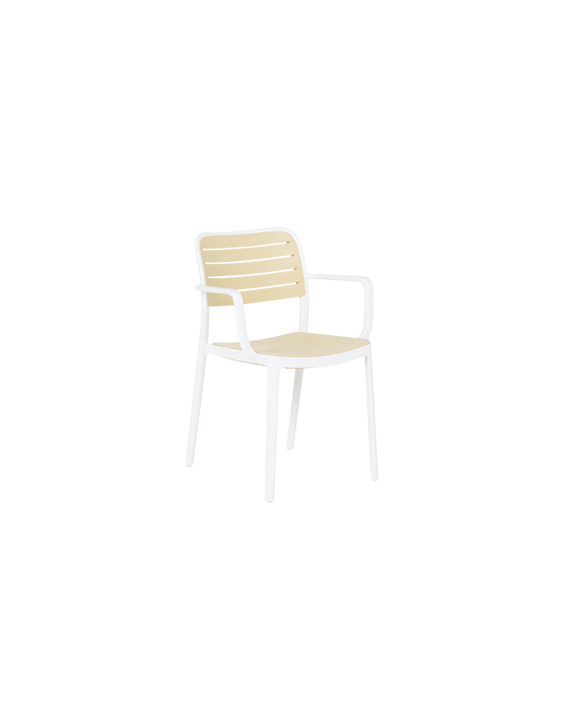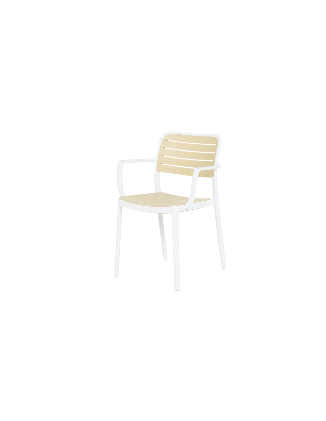 TEMARA е практичен и удобен градински стол с подлакътници, подходящ за свободното време в градината или за освежаваща напитка на терасата през топлите месеци. Този модел е едновременно лек и стабилен. Изработен е от устойчив и лесен за почистване материал.