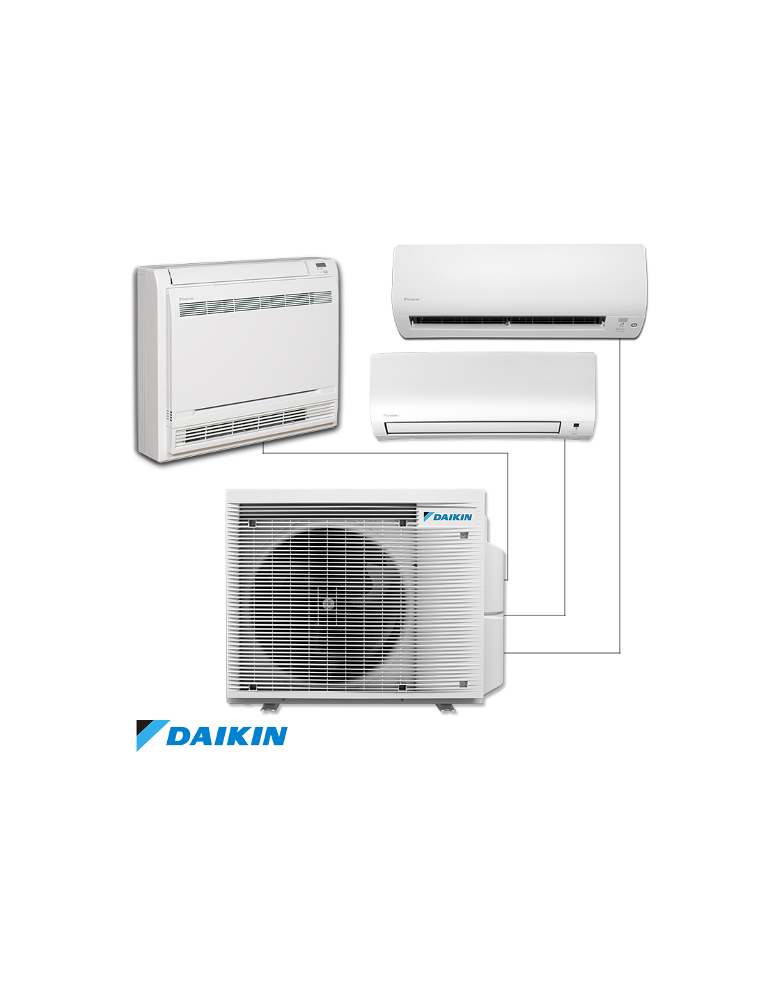 Климатизация във всяка стая Система Мулти от серията мултисплит системи на Daikin позволява включване на до 5 вътрешни тела само с едно външно тяло, като по този начин се намалява необходимото място и разходите за монтаж. Всички вътрешни тела могат да се контролират поотделно. При извършване на монтаж не е необходимо всички тела да бъдат монтирани едновременно т.е. винаги могат да се добавят още за достигане на максималния капацитет. |