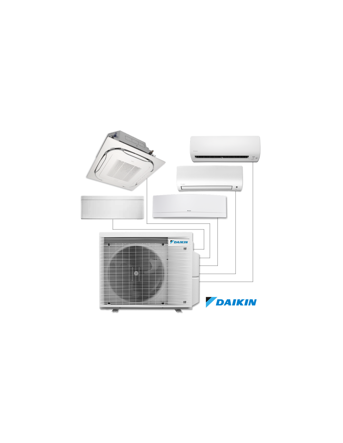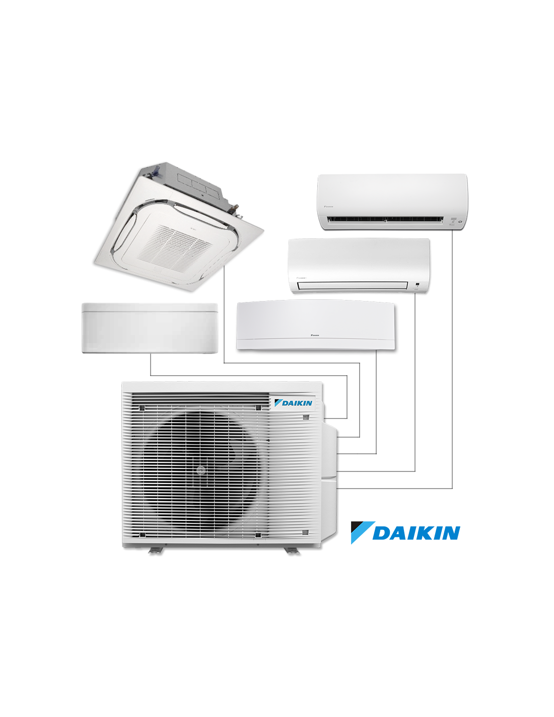 Климатизация във всяка стая Система Мулти от серията мултисплит системи на Daikin позволява включване на до 5 вътрешни тела само с едно външно тяло, като по този начин се намалява необходимото място и разходите за монтаж. Всички вътрешни тела могат да се контролират поотделно. При извършване на монтаж не е необходимо всички тела да бъдат монтирани едновременно т.е. винаги могат да се добавят още за достигане на максималния капацитет. |