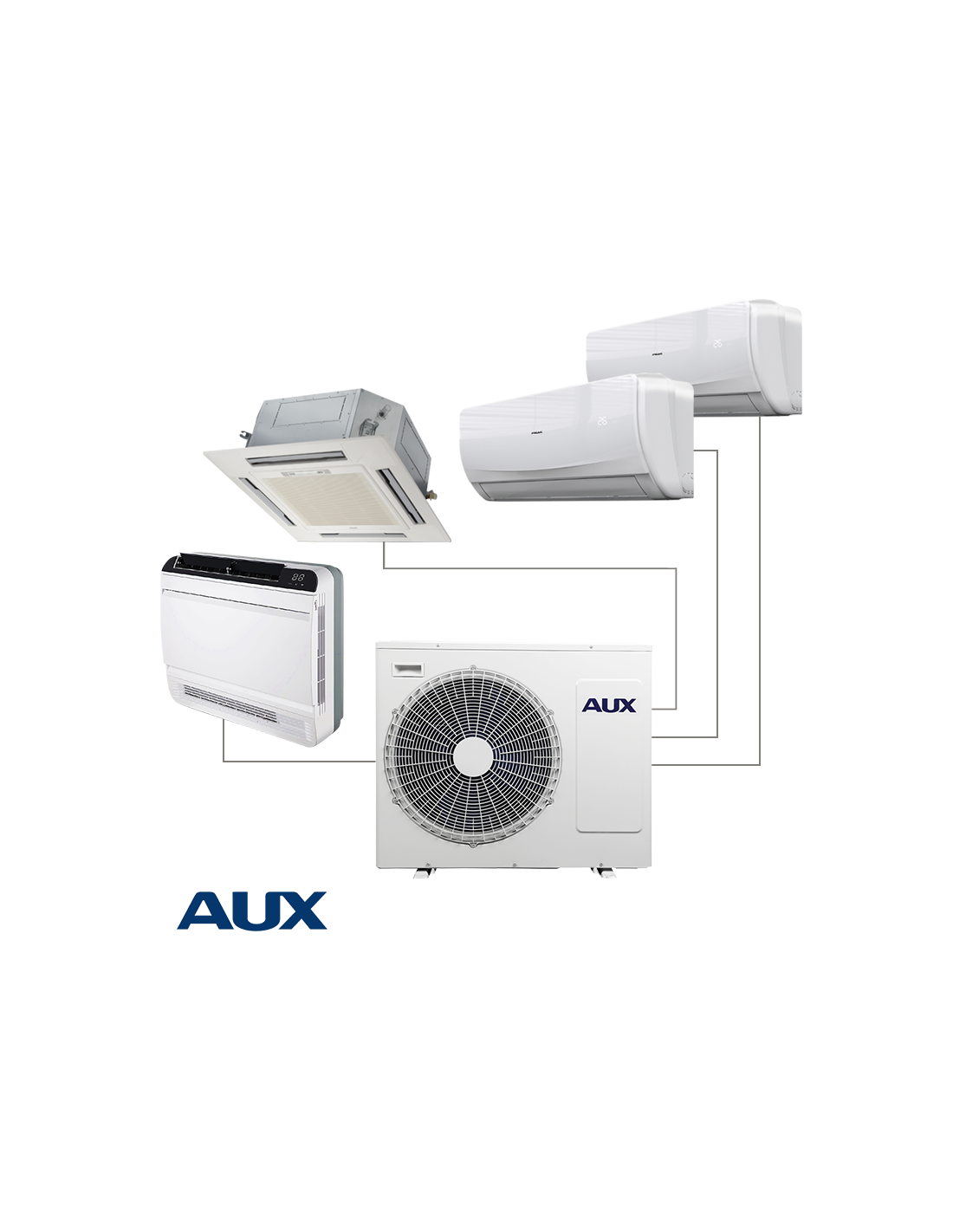 Изискването за все по-чисти фасади на сградите прави използването на мултисплит системите задължително. Мултисплит системите AUX ще ви спестят място на терасата или фасадата и ще ви осигурят нужния комфорт в дома само с едно външно тяло и голям избор от различни видове вътрешни.