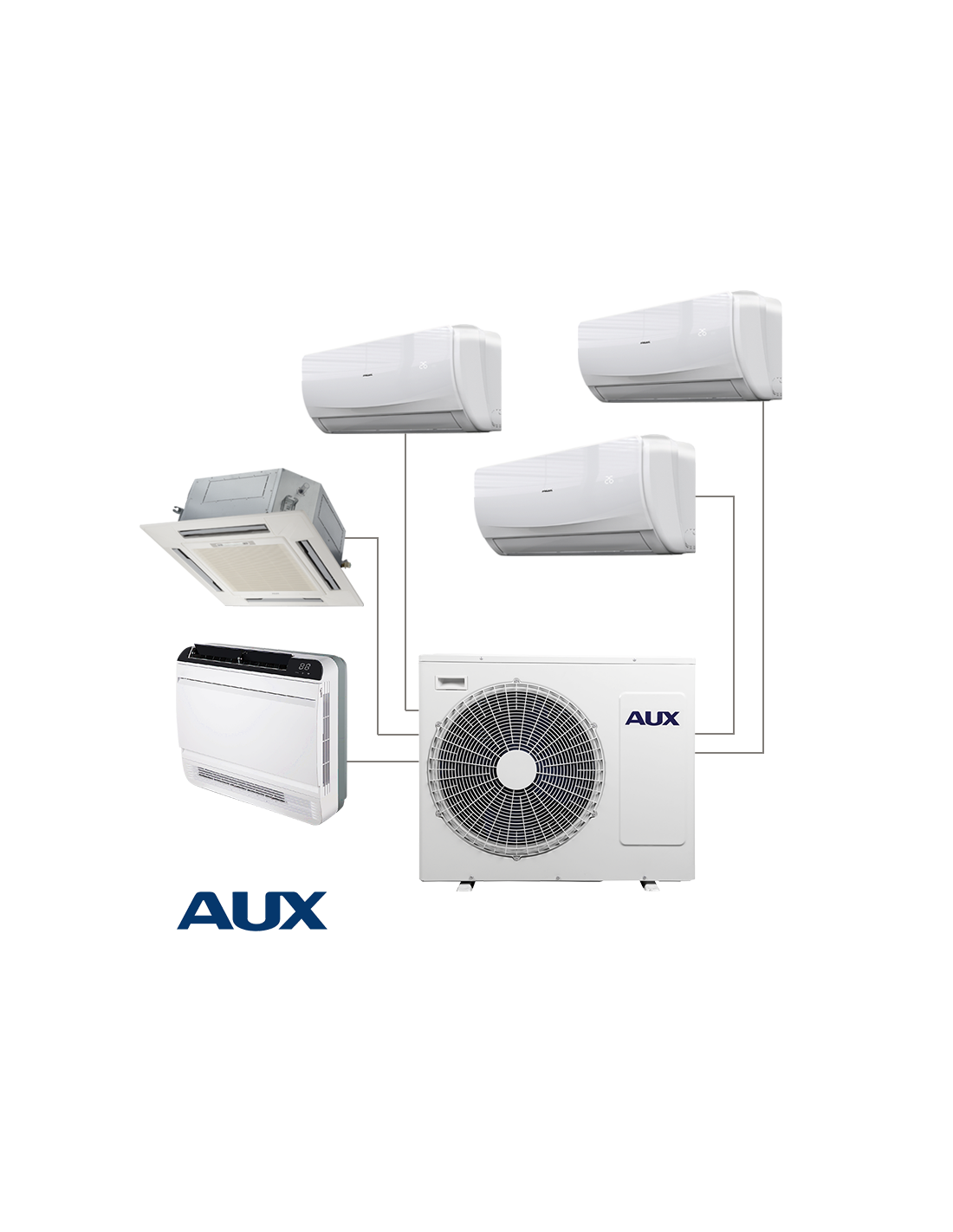 Мултисплит AUX AM3-H27/4DR3 е климатична система, работеща с едно външно и три вътрешни тела от климатици AUX, които могат да бъдат различни по вид. Предоставя възможност за гъвкав монтаж и независим контрол на всяко вътрешно тяло.