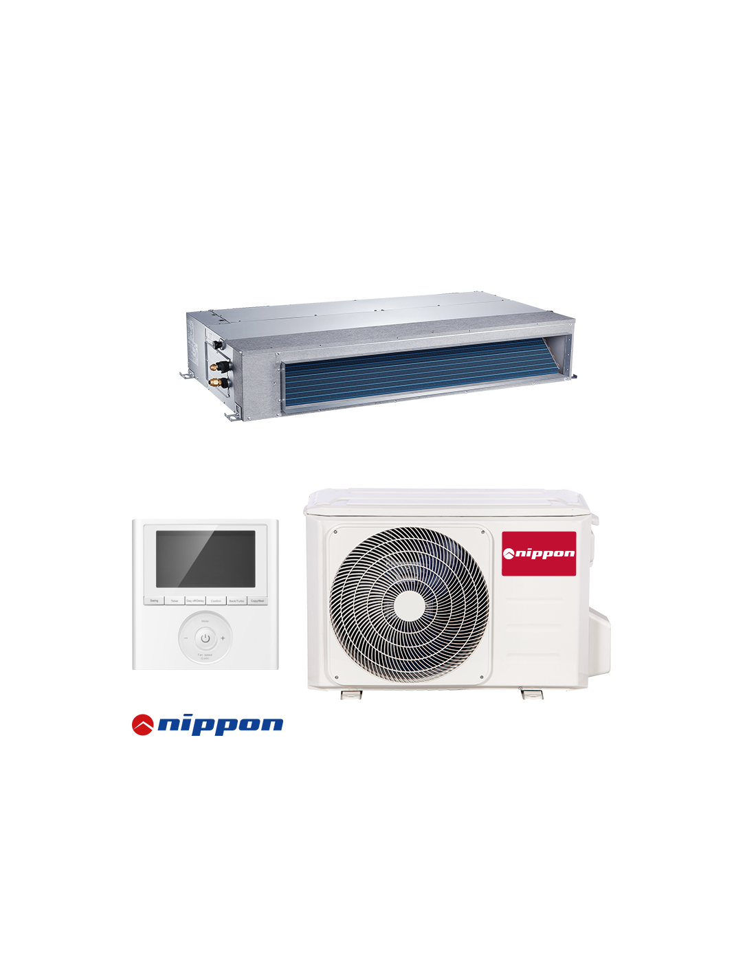 Инверторният канален климатик Nippon NTI-18HWFNX-Q / NOB30U-18HFN8-Q е подходящ за пощения до 36 кв. м. Този тип климатици са практично решение, когато въздухът трябва да се пренася на дълги разстояния. Компактните вътрешни тела с малка височина до 250 мм, могат да бъдат вградени в ниски тавани. Всички модели от серията са с висок енергиен клас - A++ на...