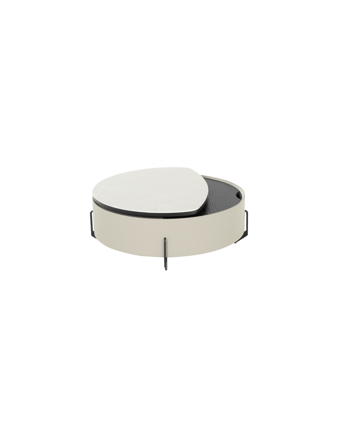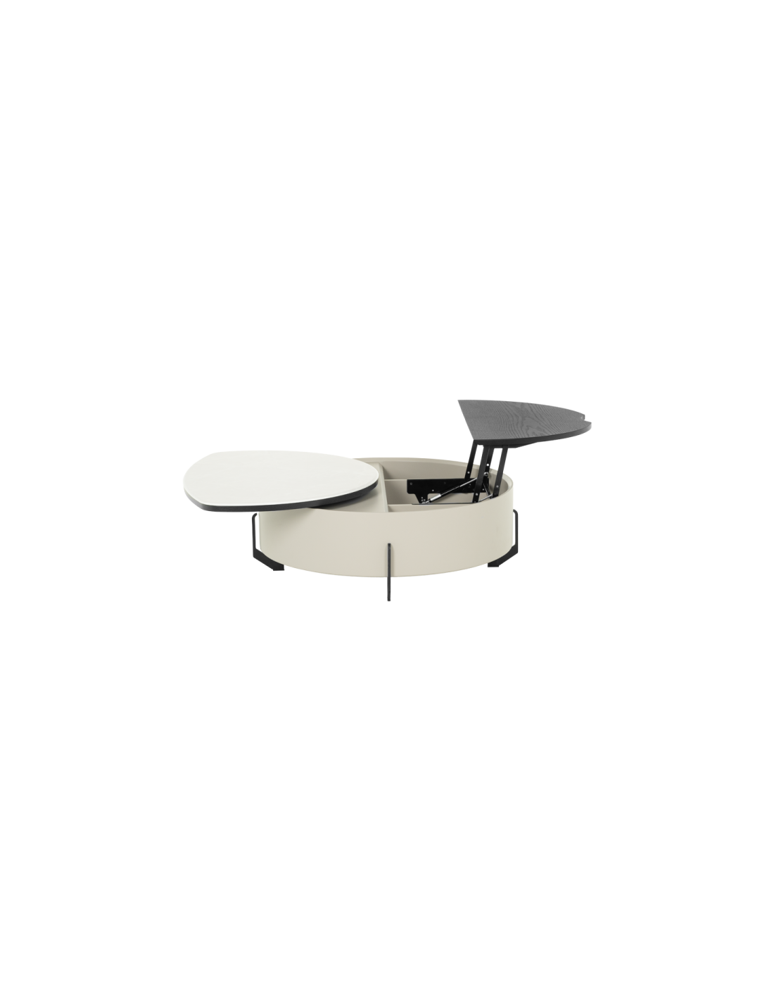 Нестандартен и функционален дизайн Един от най-забележителните елементи на масата е повдигащият механизъм. DOUGLAS се състои от иновативен плот на няколко нива. Първото се върти ефектно, позволявайки на модела да приеме различни, нестандартни форми. То открива пространство за второто, което се повдига с леко придърпване и трансформира елегантната холна масичка в трапезна площ или дори работно пространство. А под него се намират ефектните отделения за съхранение.