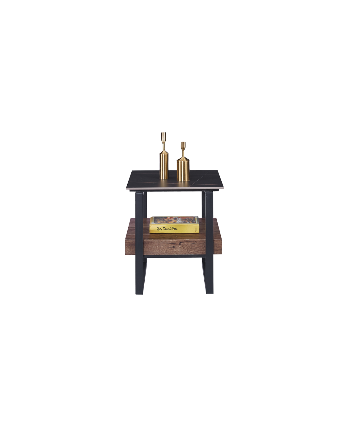 Помощна холна маса SALA комбинира модерен дизайн и функционалност. Тя е с височина 50 см и разполага с два плота - горният е изработен от керамика, а долният от МДФ с дървесно покритие. Стабилността на модела се дължи на основа от праховобоядисан метал.