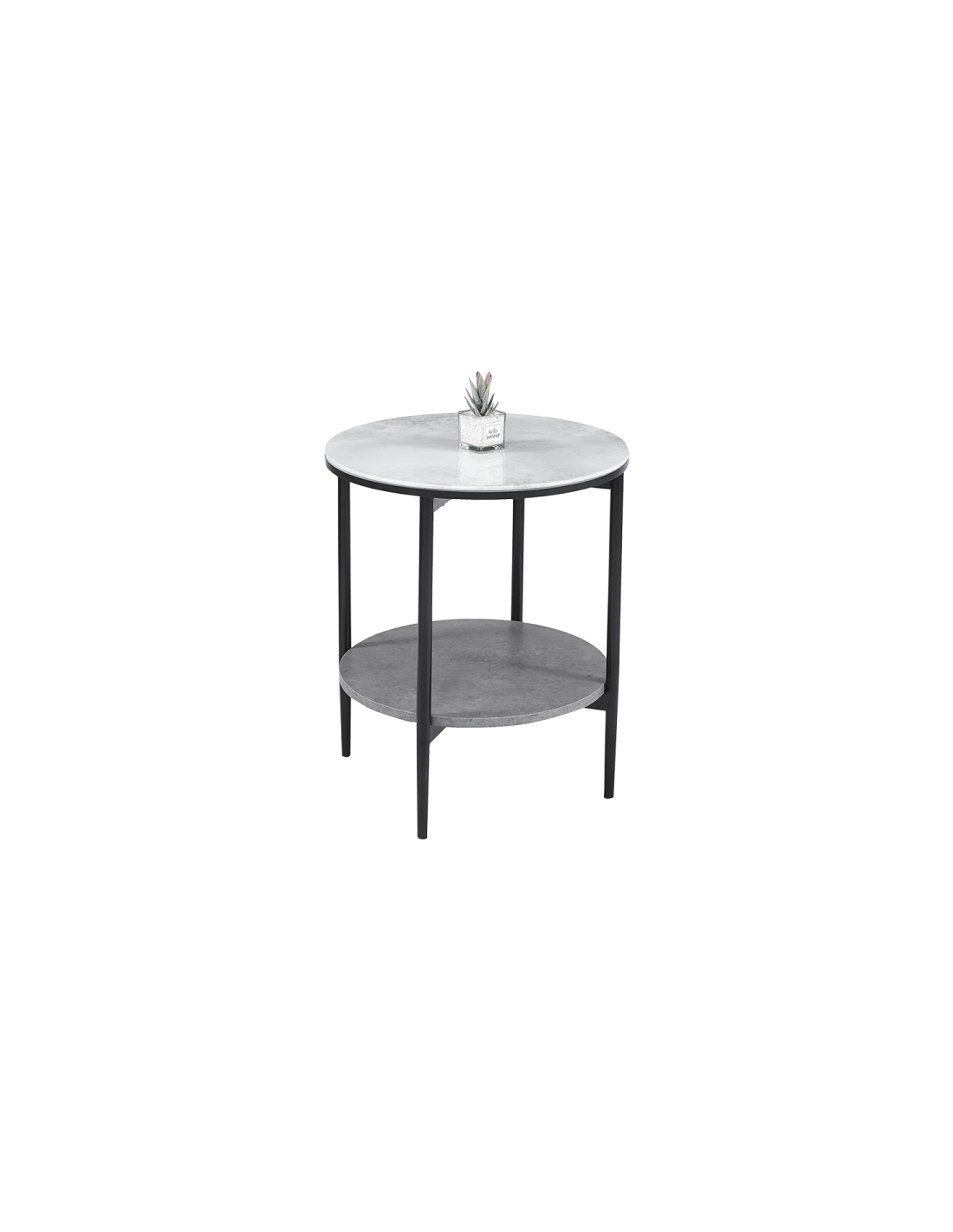 NYBRO е холна маса с интересен дизайн, която комбинира два плота - горен и долен. Те са изработени от МДФ, меламин и закалено стъкло, което е с висока степен на издръжливост срещу надрасквания. Стабилната основа е от праховобоядисан метал. Помощна маса NYBRO е перфектното допълнение към хола у дома.