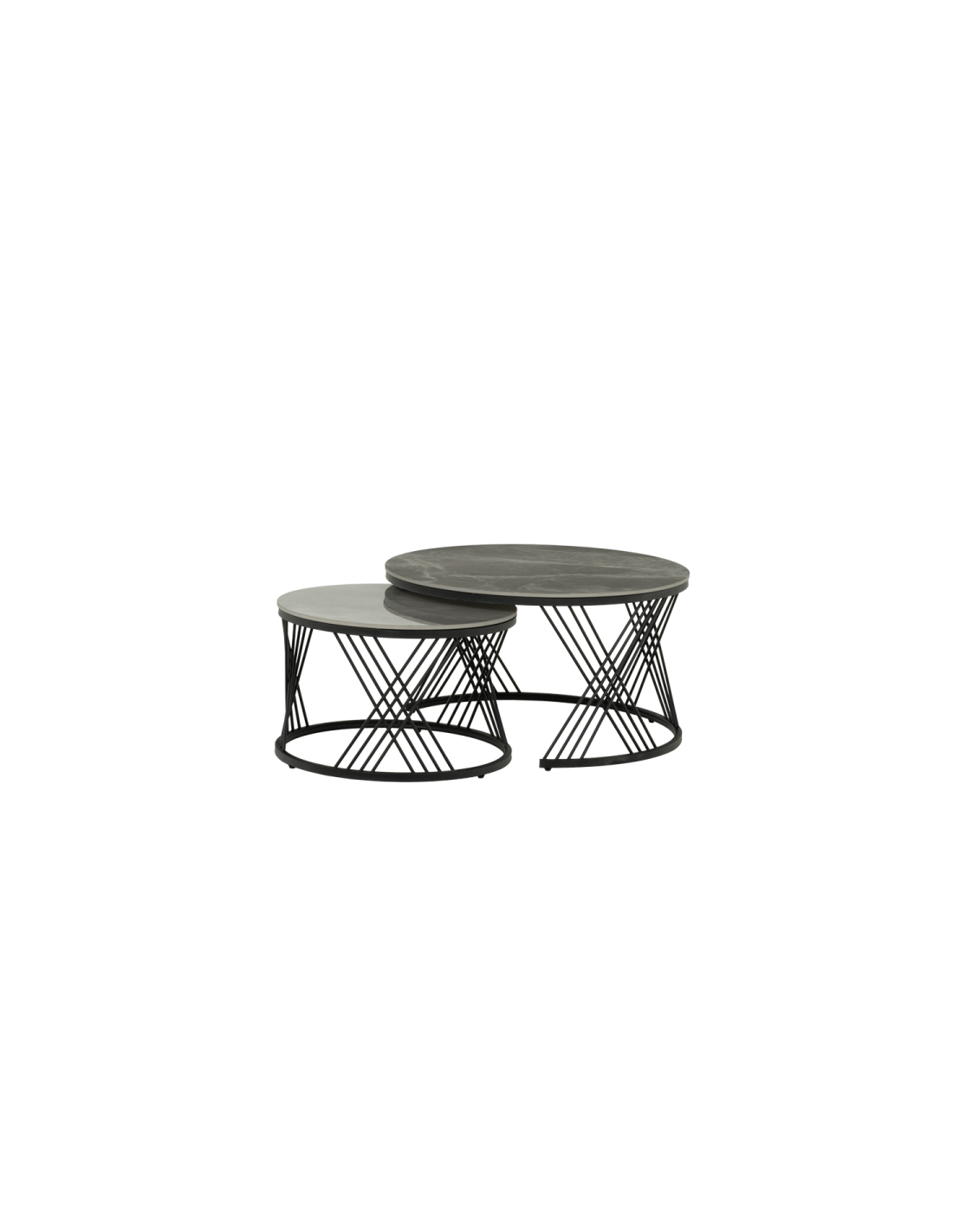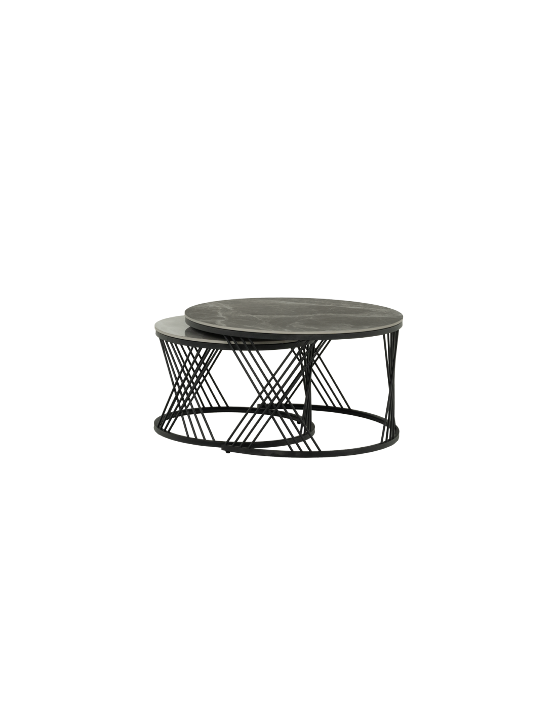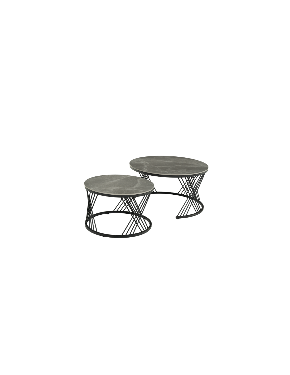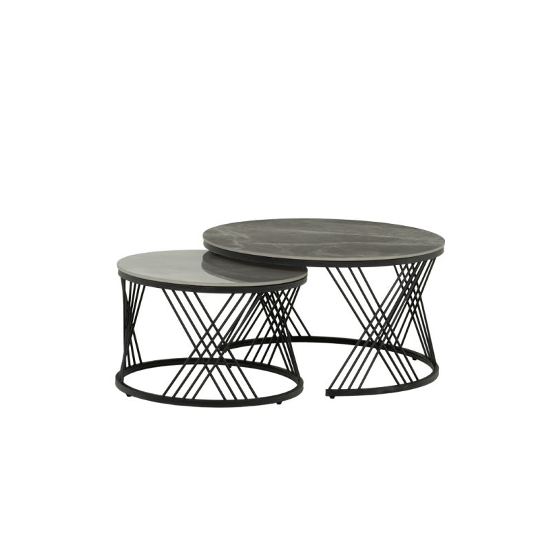 Комплектът LAHOLM включва практични холни масички с уникален дизайн. Те съчетават керамичен плот с устойчива основа от праховобоядисан метал, което ги прави както стилни, така и стабилни. Тези масички са идеални за различни приложения - от помощни масички до декоративен елемент във всяка стая, добавяйки функционалност и елегантност към вашия интериор.