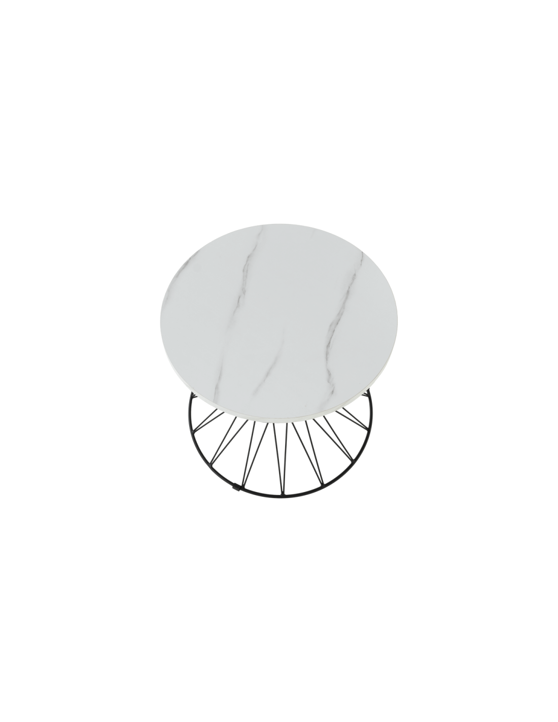 Помощната маса HENAN е стилен акцент, който ще добави елегантност и модерен характер на всеки интериор. Белият плот с мраморен ефект от МДФ и меламин придава изисканост, а интересната основа от прахобоядисан метал добавя артистичен акцент. Компактните ѝ размери я правят изключително удобна – идеална за малки вещи до дивана или за оформяне на уютен кът за четене.