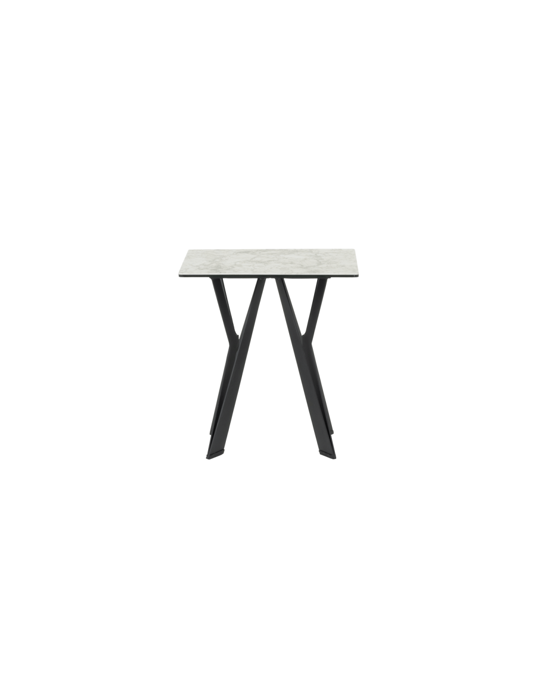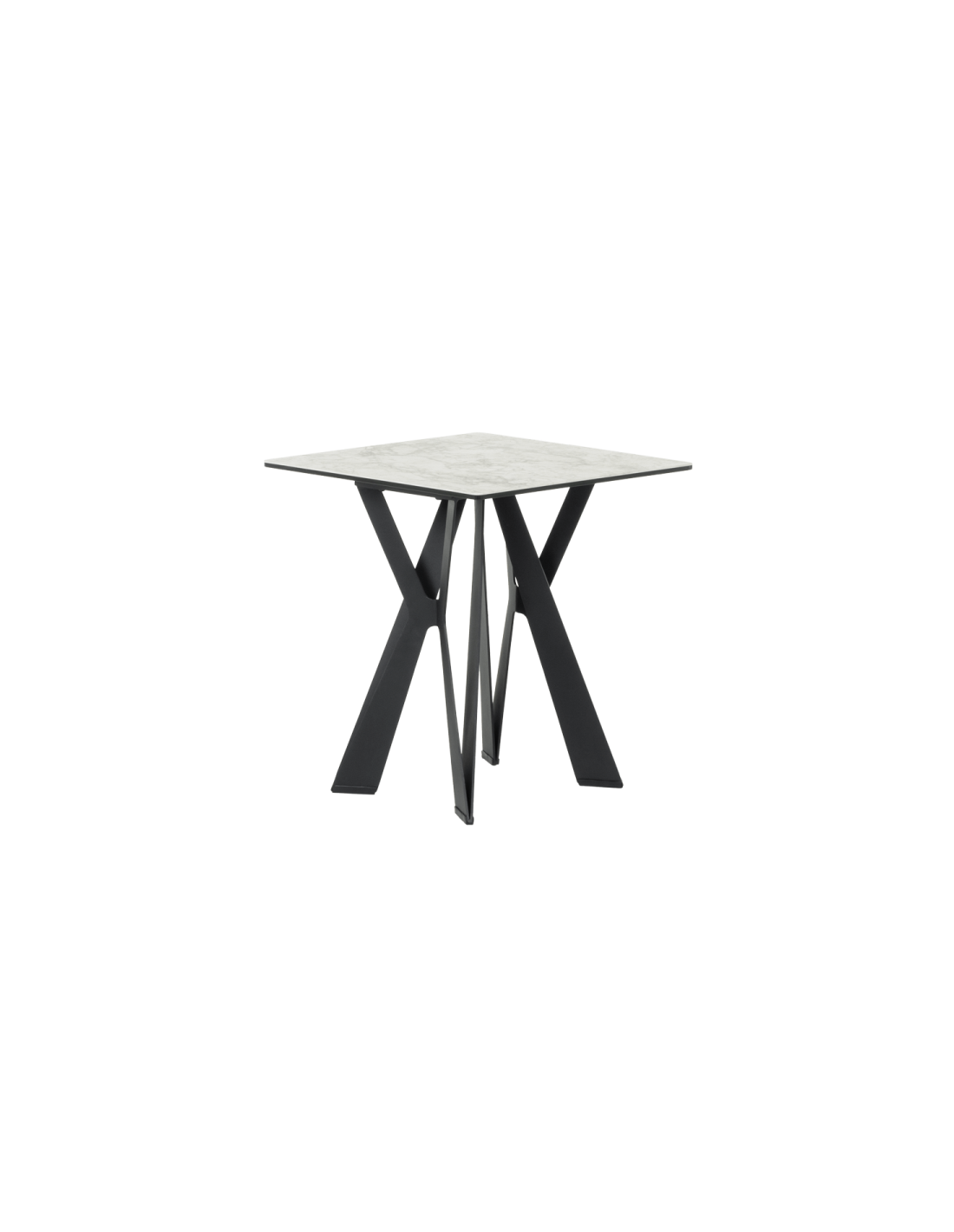 Помощната маса GUBIN впечатлява със съвременния си дизайн и практични размери. Плотът с дебелина 12 мм комбинира 8 мм закалено стъкло с 4 мм керамичен завършек, създавайки здрава и стилна повърхност, която е идеална за ежедневна употреба. Основата от праховобоядисан метал се откроява със своята геометрична структура и съвременен черен матов цвят, добавяйки изтънчен акцент към всяко пространство. С компактните си размери от 50 см дължина, 50 см ширина и 55 см височина, GUBIN е универсално решение, което носи удобство и елегантност във всяка стая.