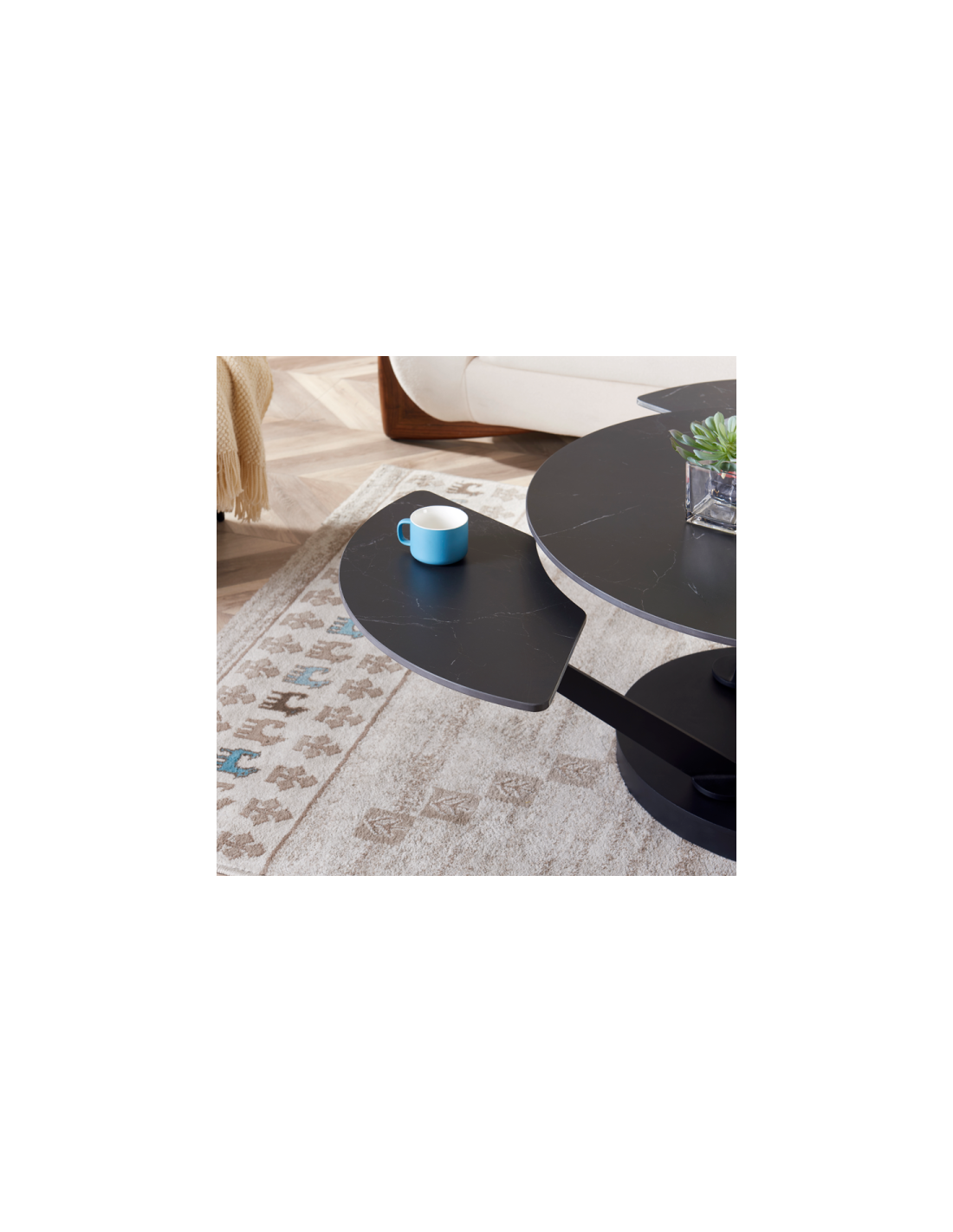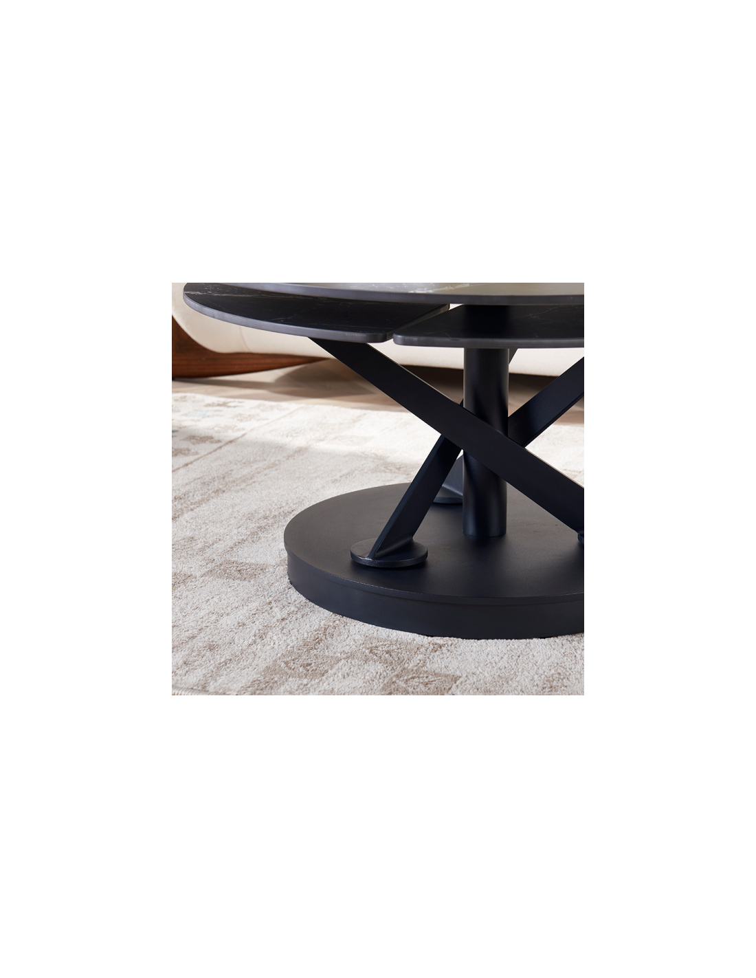 Холна маса BARINAS е перфектното решение за модерния дом, съчетавайки стилна визия и практичност. Основната маса е допълнена с три подвижни плота, които лесно се прибират под основния, когато не са необходими. Това предоставя изключителна гъвкавост в подредбата и възможност за адаптиране към вашето пространство. Плотовете са изработени от керамика, което придава елегантен и луксозен вид, а праховобоядисаната основа в стилен черен цвят осигурява здравина и стабилност. Със своя съвременен дизайн и функционалност, холна маса BARINAS е идеалният избор за всяко домакинство, добавяйки стил и удобство във вашата дневна.