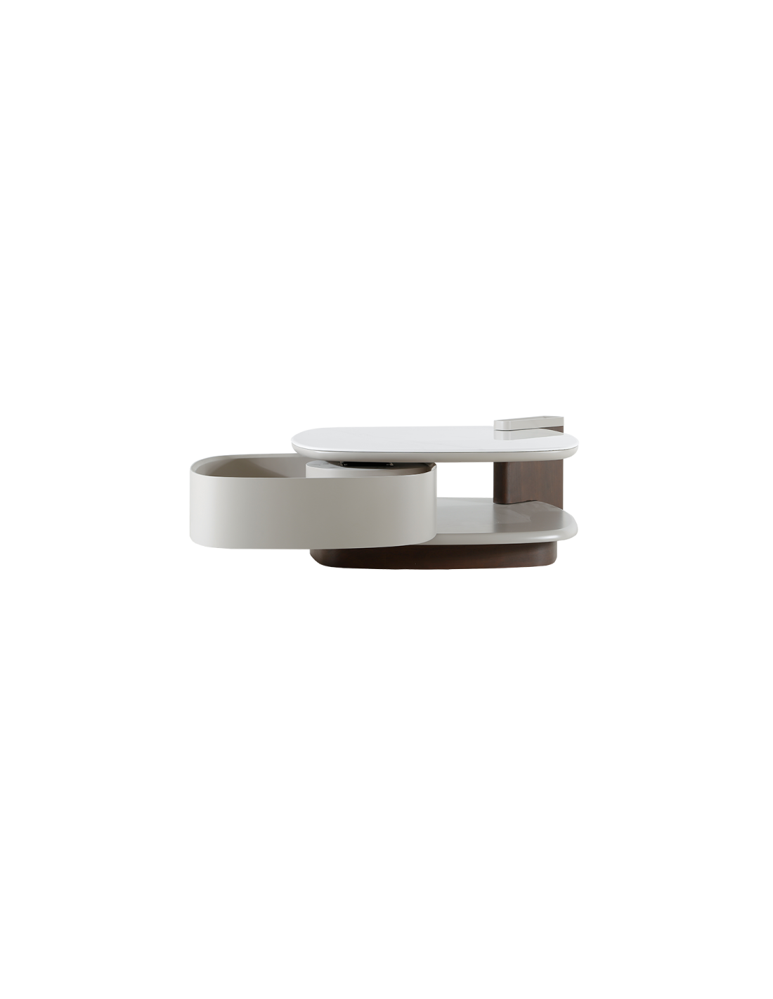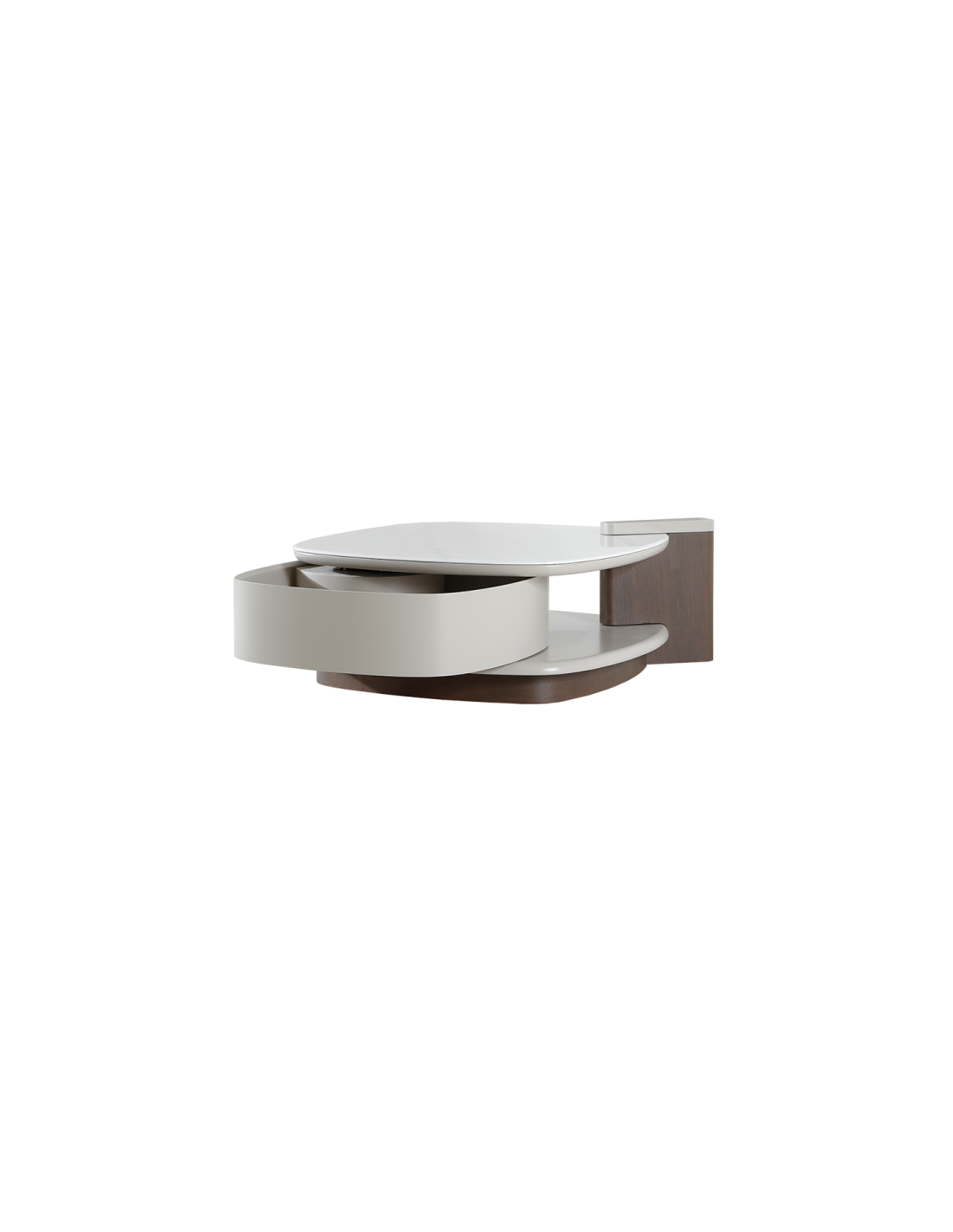 Холната маса ALDO впечатлява с артистичен дизайн и оригинална геометрия, превръщайки се в изискан акцент във всяка модерна дневна. Плотът съчетава изтънчената визия на керамика с устойчивостта на MDF, а основата е изцяло изработена от MDF с ефект на дърво за допълнителен уют и топлина. Отличителният елемент е скритото чекмедже, което се отваря чрез плавно завъртане – практично решение с дизайнерски почерк. Идеален избор за интериори, в които стилът и функционалността вървят ръка за ръка.
