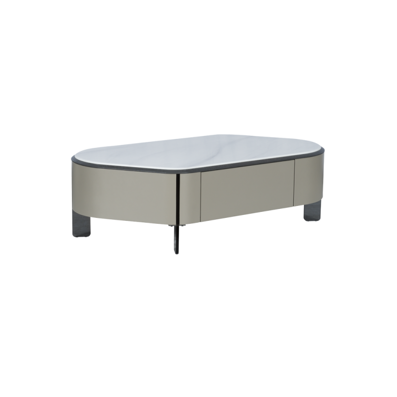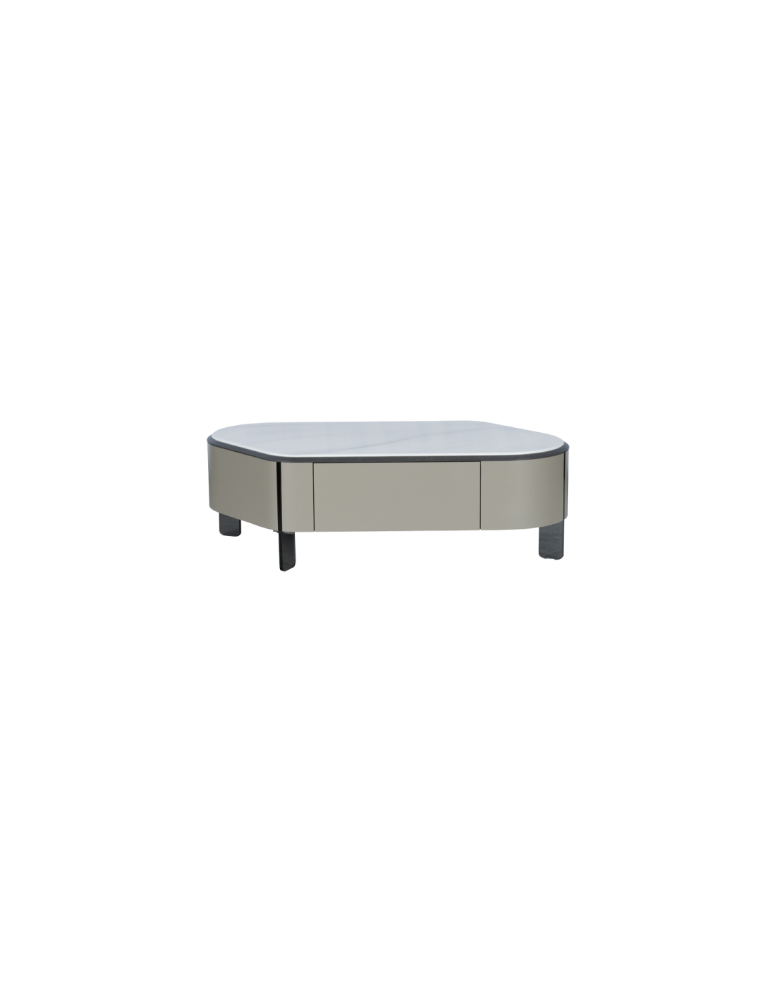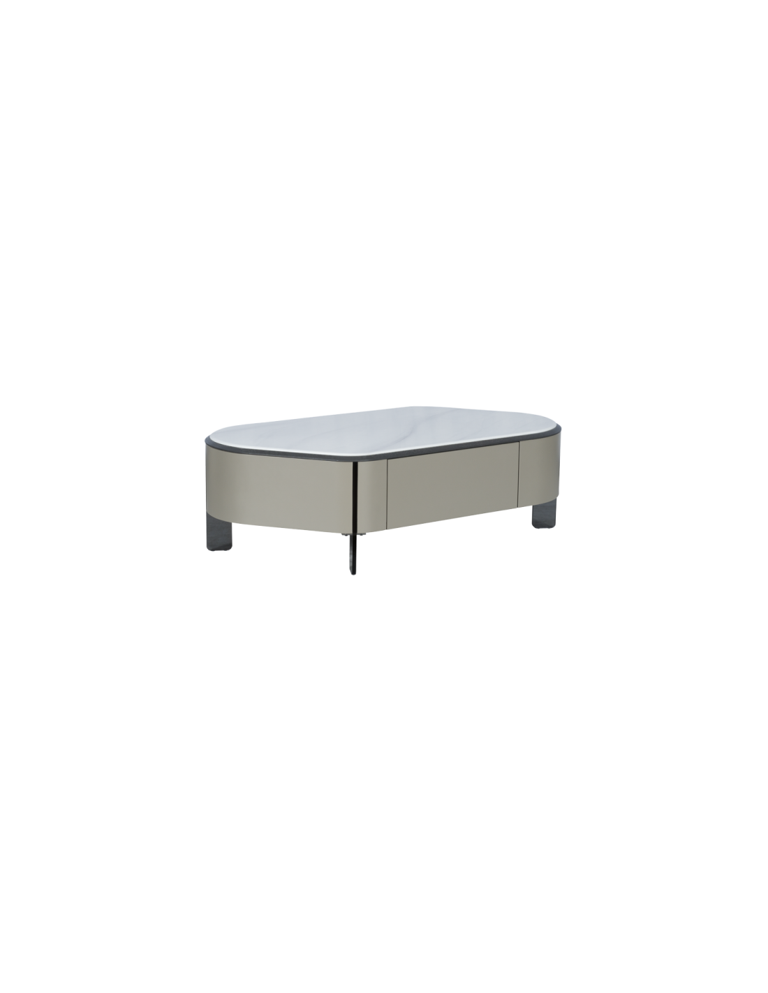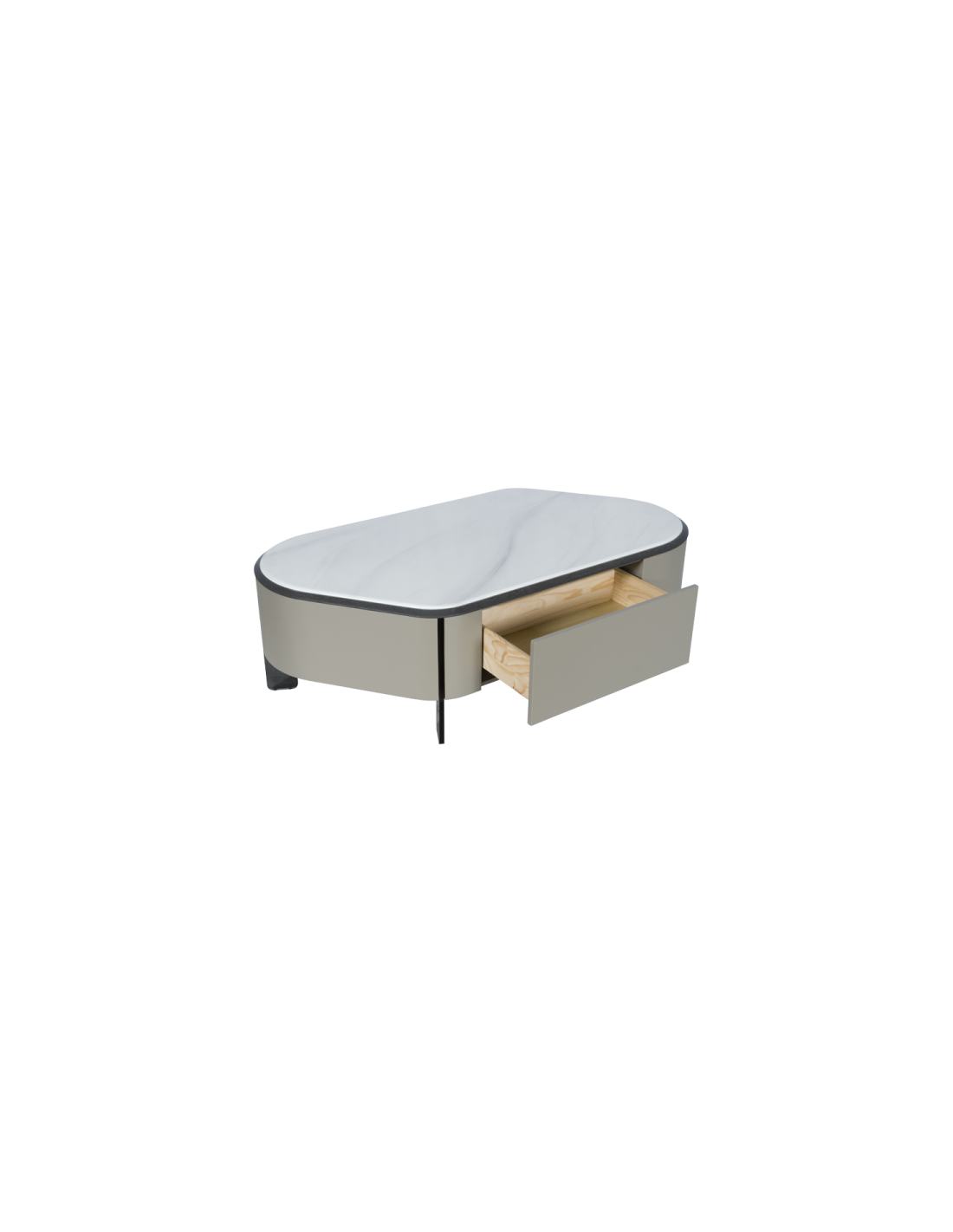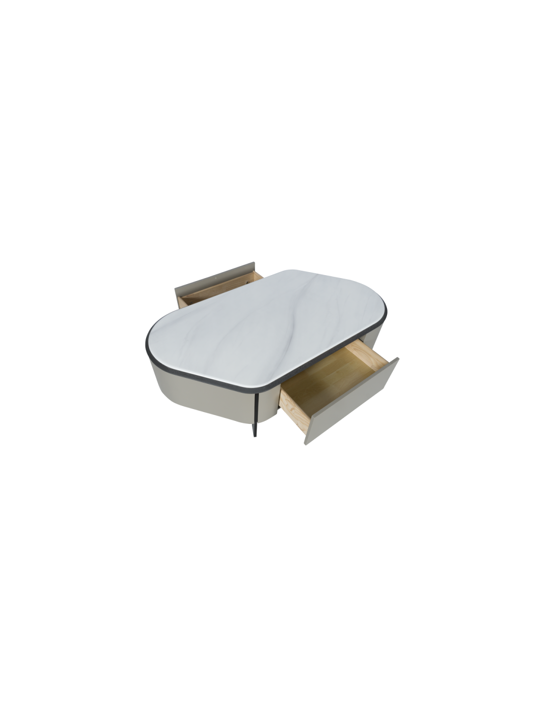 Холната маса PALMER впечатлява с изчистена елегантност и стилен дизайн, в който се преплитат модерни линии и висококачествени материали. Плотът от керамика придава усещане за лукс и изтънченост, а заоблените контури омекотяват визията и я правят подходяща за различни интериорни концепции. Основата е изработена от МДФ, краката са от праховобоядисан метал, а двете плавно отварящи се чекмеджета с корпуси от борова дървесина предлагат удобно място за съхранение на дребни вещи.
