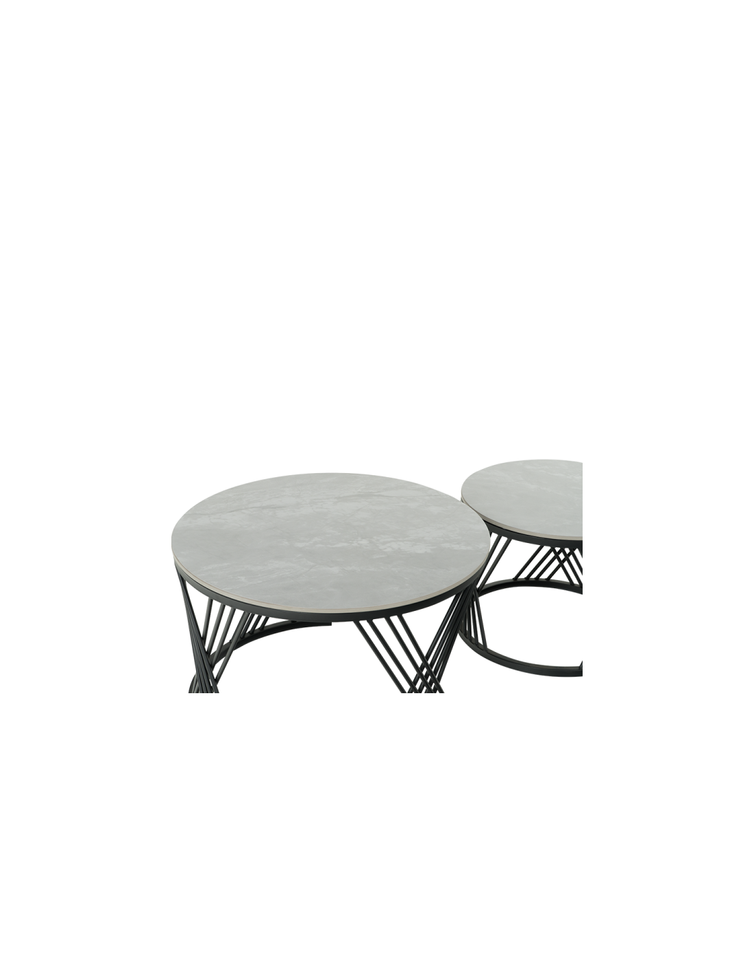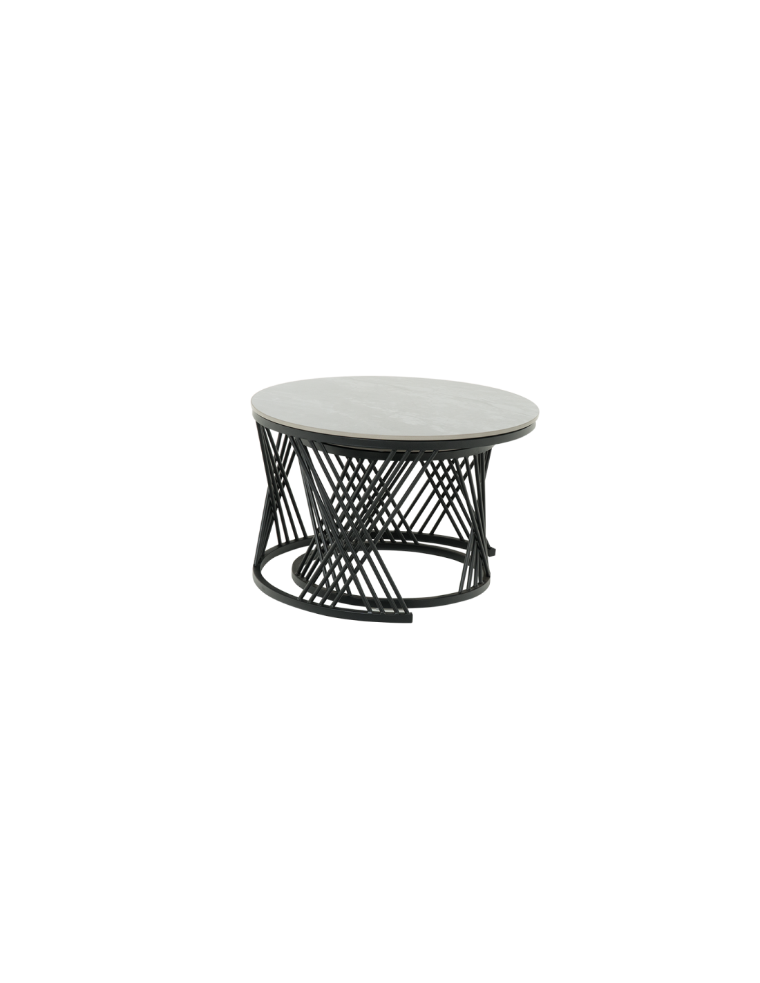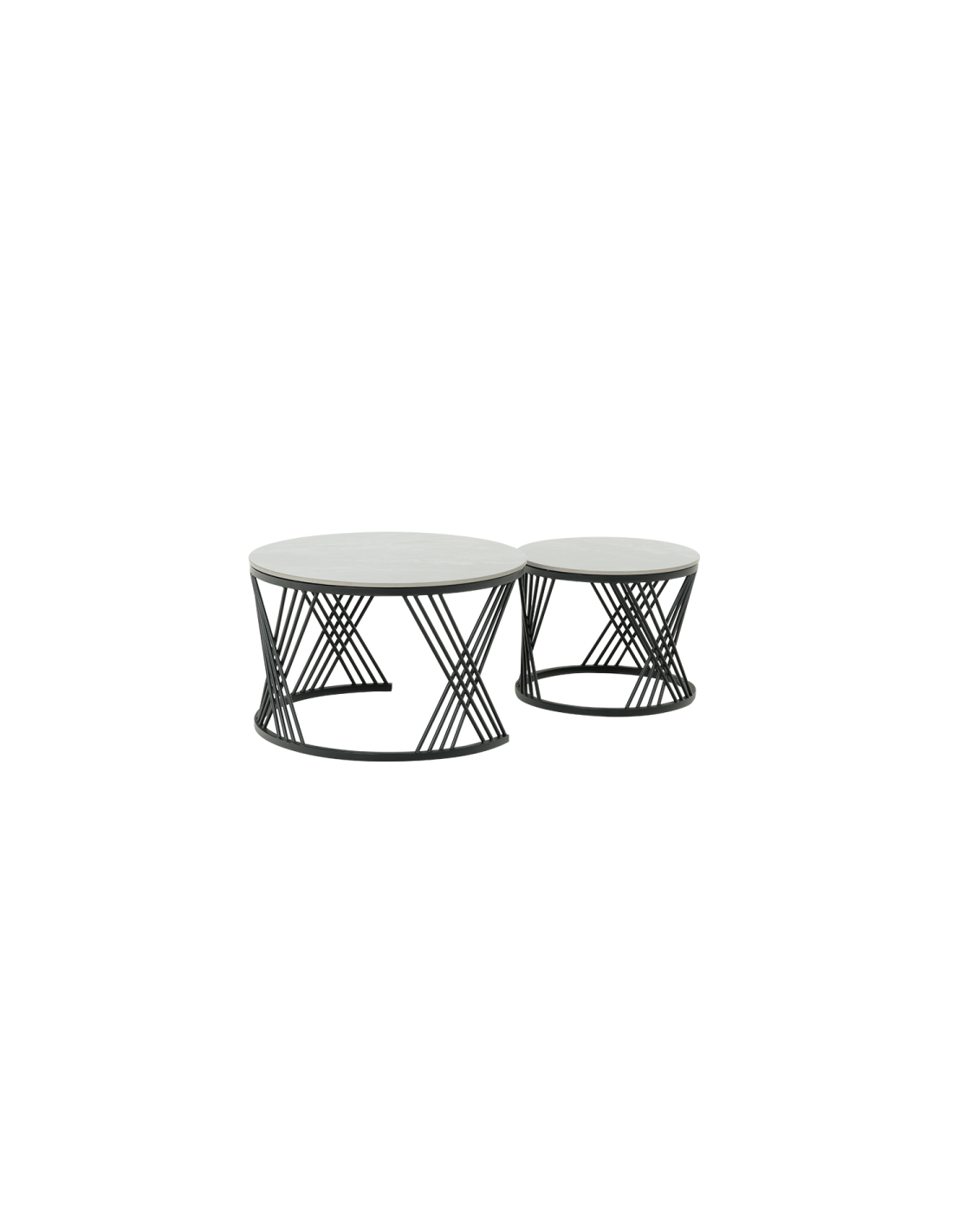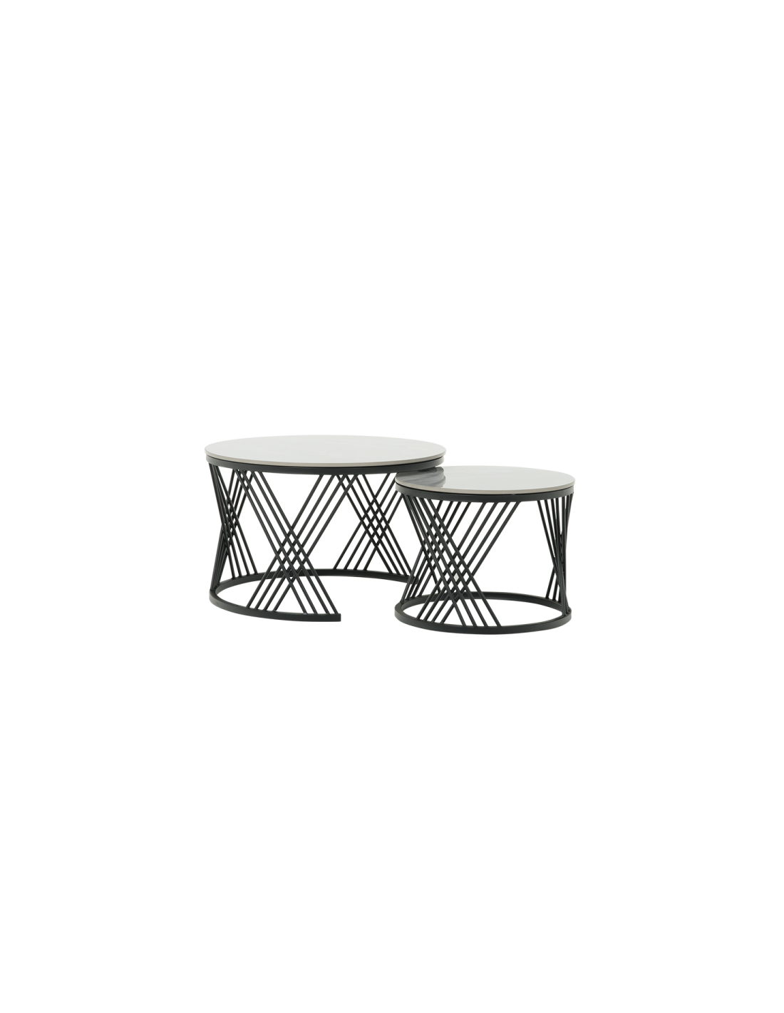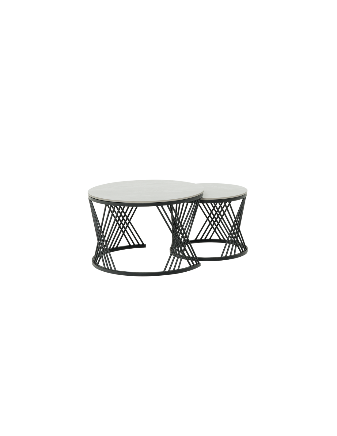 FRESNO ДЕКО са комплект практични холни масички с интересен дизайн. Те са изработени от керамичен плот и стабилна основа от праховобоядисан метал. Моделът е подходящ за разнообразна употреба и може да бъде използван както като помощна масичка така и за декорация в любимата ви стая.