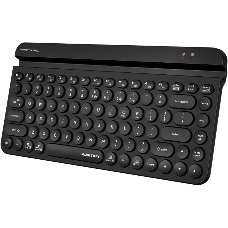 Безжична тиха компактна клавиатура с кръгли клавиши A4tech Fstyler FBK30, Bluetooth, 2.4G, Стойка за телефон, Кирилизирана, Черна