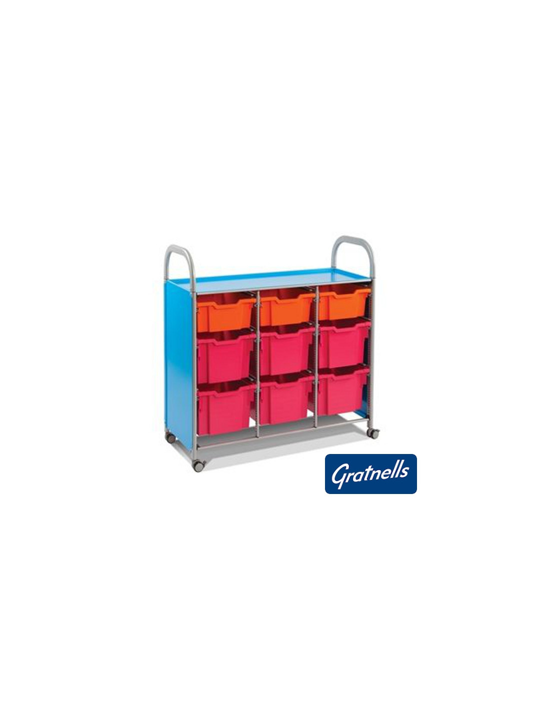 Калеро плюс е нова идея за съхраниение и предвижване на учебни пособия. Отлична подвижност с колела 50мм. Спирачен механизъм в колелата, активиран с крака. Предлага се във варианти с 2 или 3 колони. Метална конструкция с прахово покритие RAL9006. Продава се в комплект с 3 средни контейнера (F2) и 6 дълбоки контейнера (F25). Доставя се пакетирана, за сглобяване.