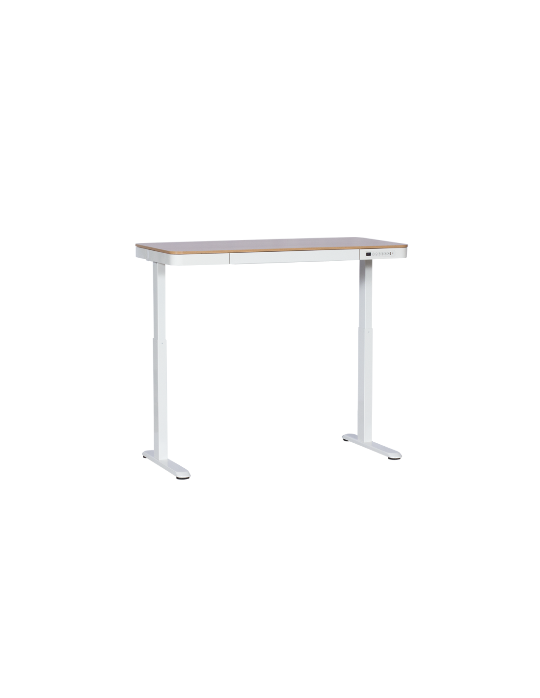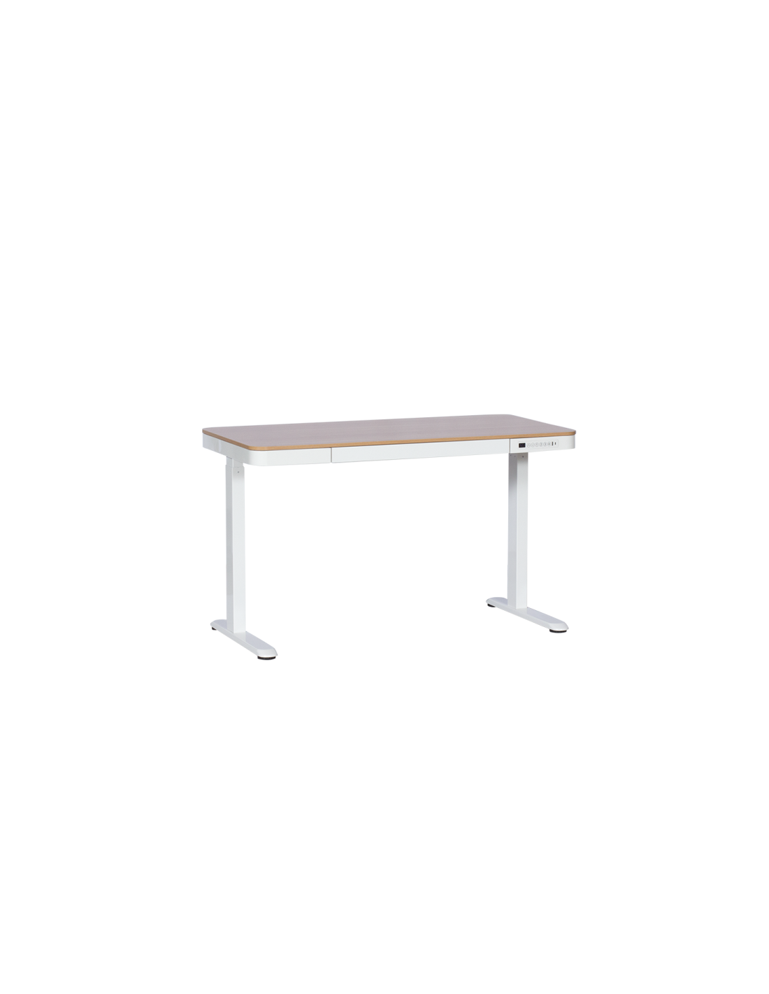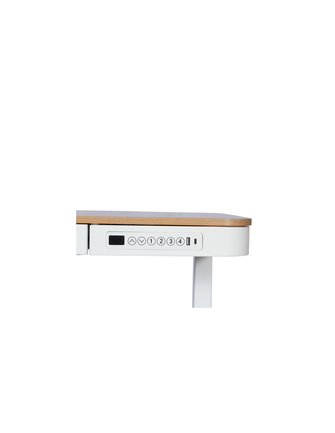 Височината на ергономичното бюро Carmen CR-118 E се регулира изключително лесно и бързо, чрез малък електронен панел за управление с дисплей и стилен дизайн. От бутоните на него можете да движите плота нагоре или надолу до желаната височина, като на дисплея ще виждате как се променя. За още по-голямо удобство може да запаметите 4 позиции с различна височина. На самия панел са разположени също и USB порт и Type С порт, за да бъдат вашите телефони или таблет под ръка на бюрото, докато ги зареждате.