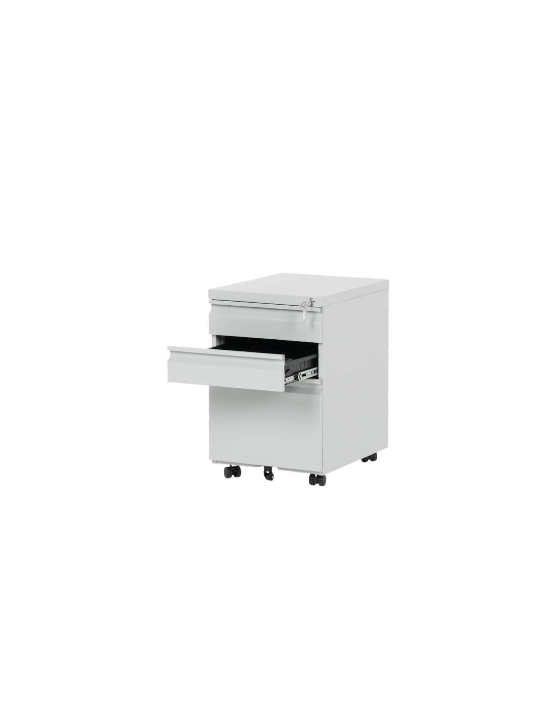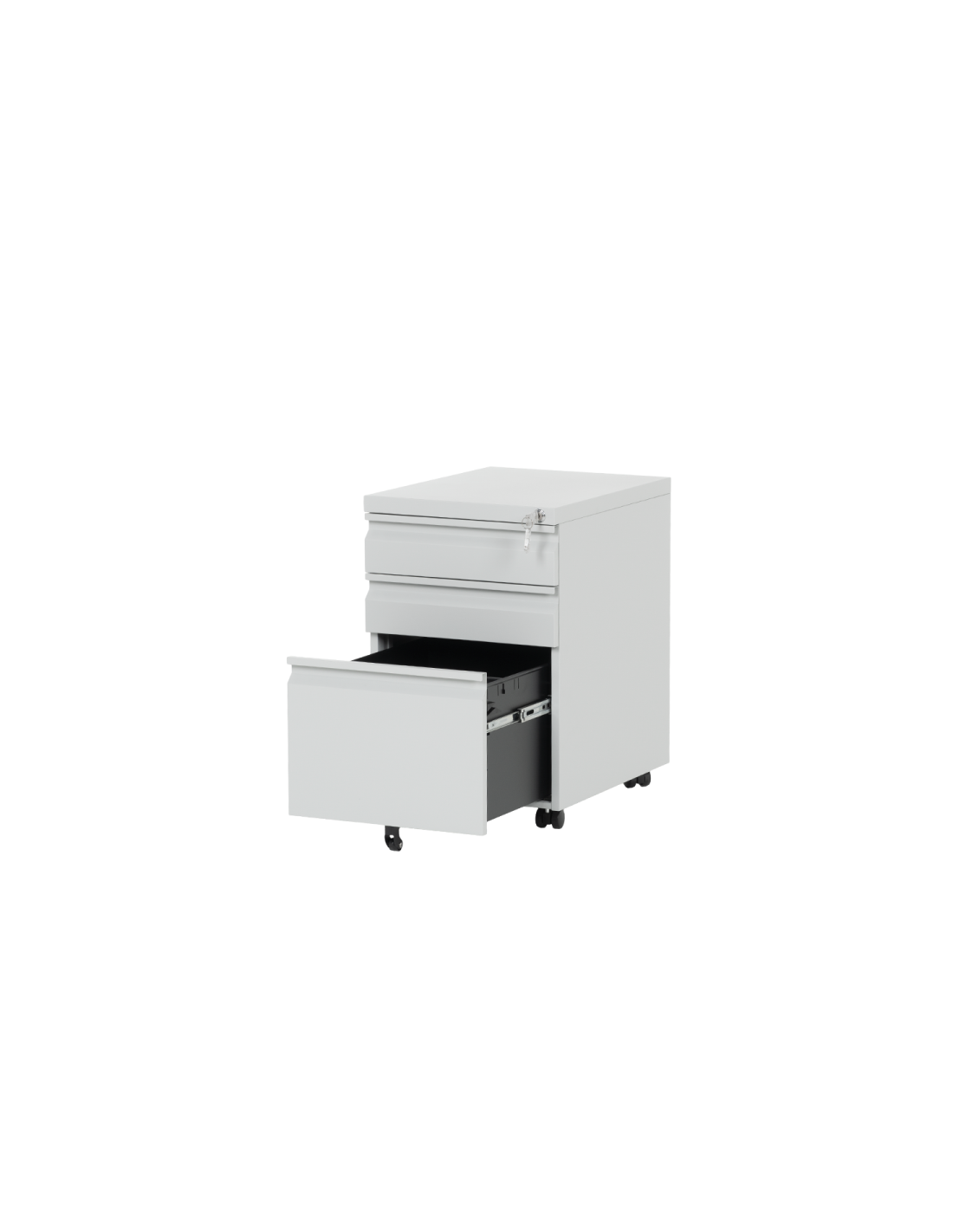 Офис контейнерът Carmen CR-1811 K в пясъчно сив цвят съчетава елегантен дизайн и висока функционалност. Изработен е от устойчив метал с прахово боядисано покритие, гарантиращо дълготрайност и защита от износване. Контейнерът разполага с четири удобни чекмеджета, надеждна заключваща система за съхранение на важни документи и колела за лесно преместване, което го прави перфектен избор за динамична офис среда.