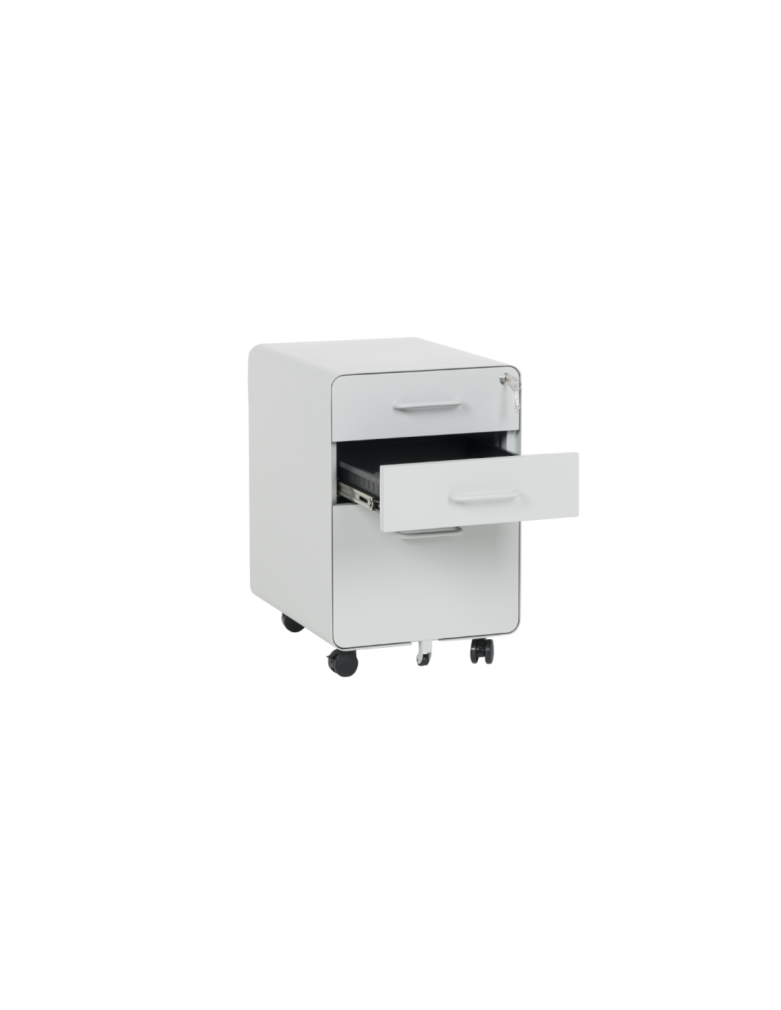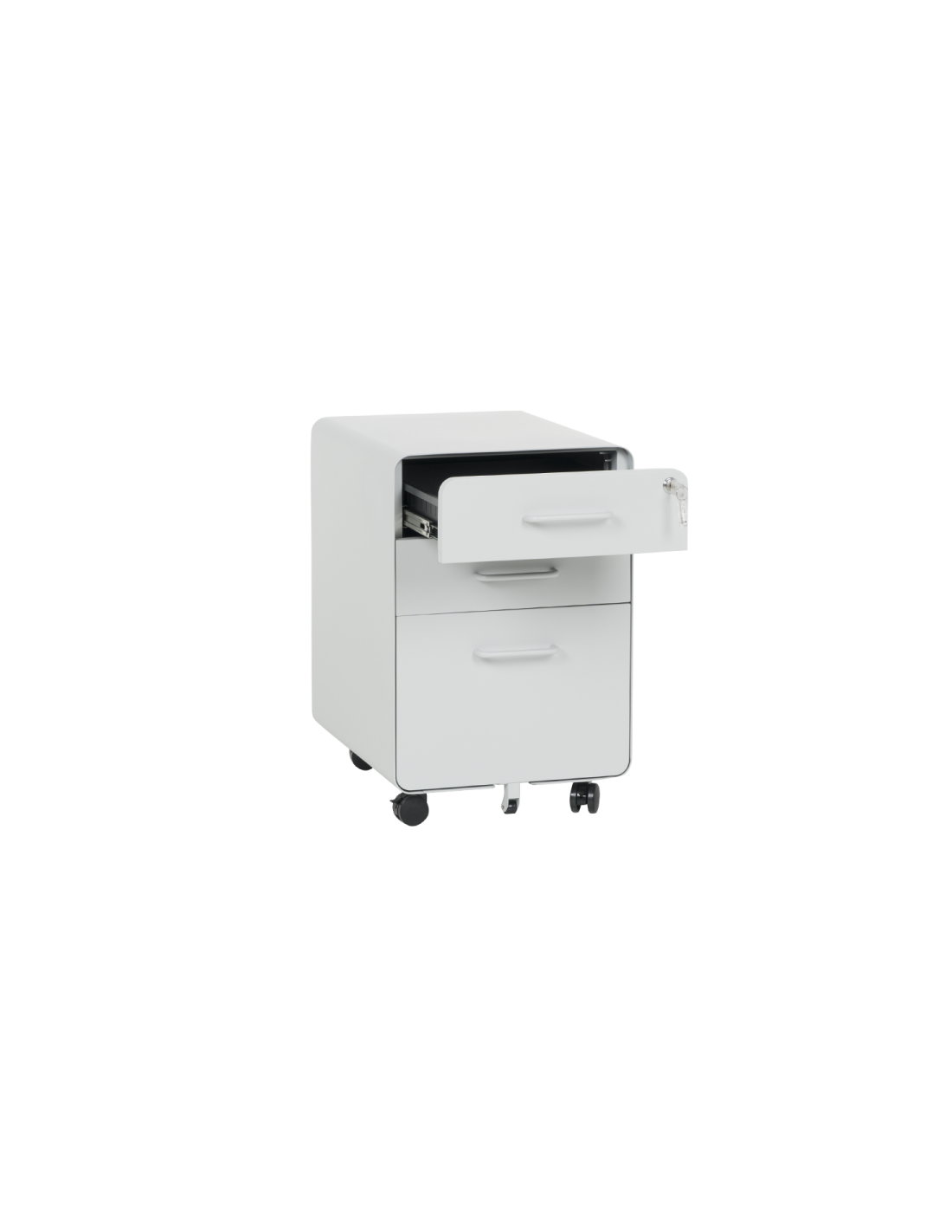 Офис контейнерът Carmen CR-1802 J SAND е метален шкаф тип кардекс с 3 чекмеджета с удобни дръжки и централно заключване. В основата на шкафа има колела за лесно придвижване при нужда. Контейнерът пристига сглобен, без необходимост от монтаж. Моделът е със система против накланяне, поради която чекмеджетата се отварят едно по едно (за да отворите едно, другите 2 трябва да са затворени).