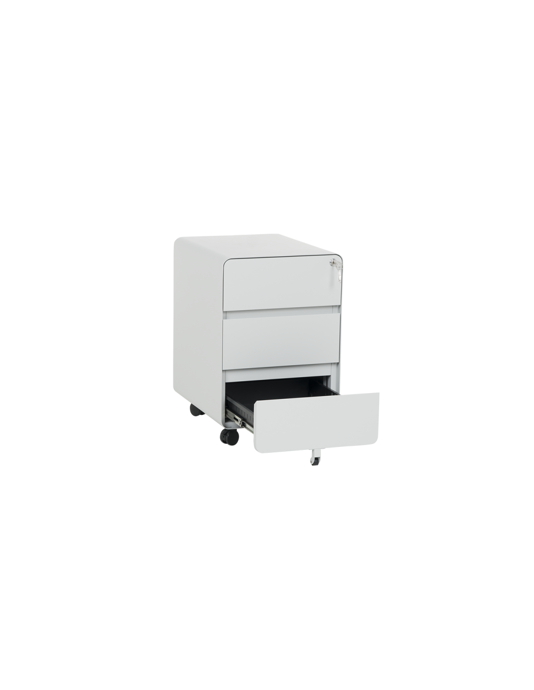 Офис контейнерът Carmen CR-1805 J SAND е практичен метален шкаф тип кардекс, който пристига сглобен, без нужда от монтаж. Моделът е със заоблени линии и колела в основата, за лесно придвижване от едно място на друго. Разполага с 3 чекмеджета със централно заключване. При отключено положение всяко чекмедже се отваря самостоятелно, когато другите 2 са затворени.