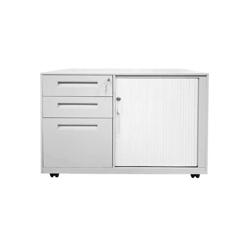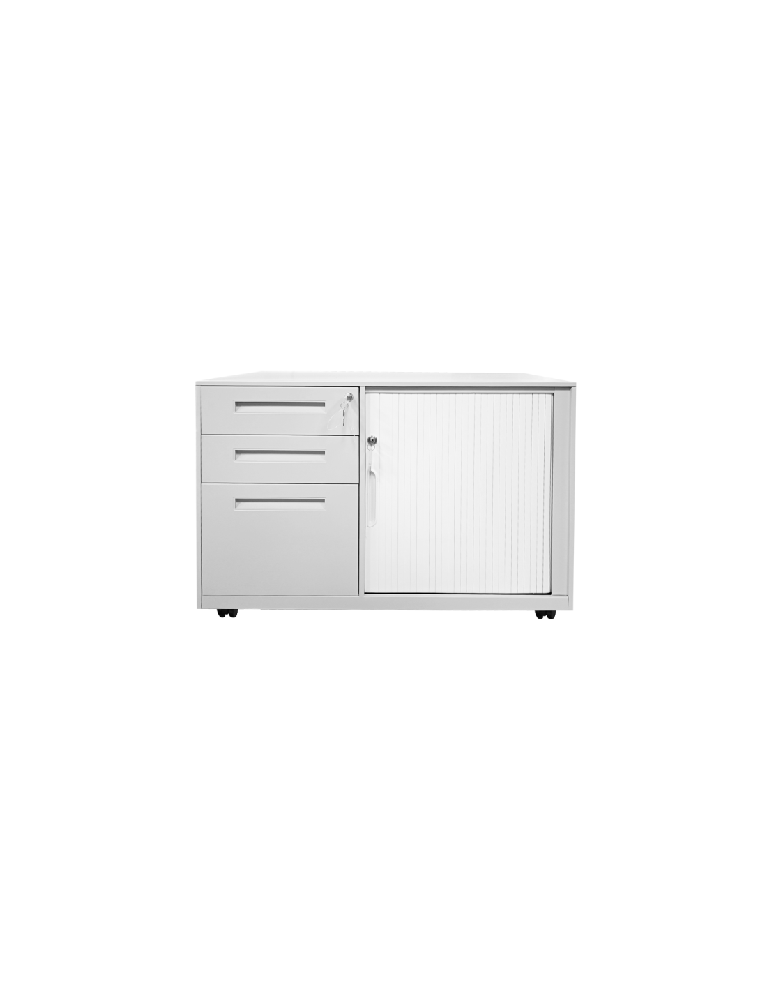 Кардекс Carmen CR-1850 K предлага практично решение за организиране на документи и офис принадлежности. Разполага с две чекмеджета и шкаф с плъзгаща врата, като всяко отделение е снабдено с индивидуално заключване с ключ за повишена сигурност. Вътрешното пространство включва регулируеми рафтове, които осигуряват гъвкавост при подредба. Компактната конструкция и плъзгащият механизъм на вратата го правят удобен за използване дори в ограничени пространства, например под бюро.
