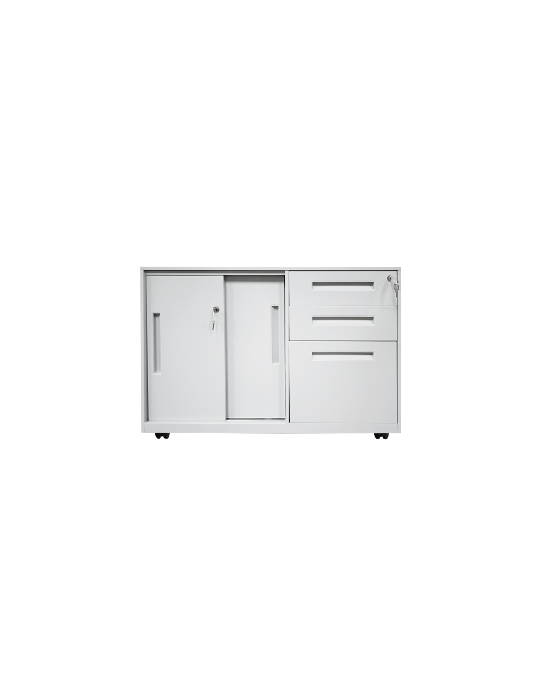 Кардекс Carmen CR-1851 K разполага с 2 чекмеджета и отделение с плъзгаща врата, като всяка зона е снабдена с отделно заключване с ключ. Вътрешният шкаф е оборудван с регулируеми рафтове, осигуряващи адаптивно пространство за документи и консумативи. Плъзгащата врата улеснява достъпа в тесни пространства, а компактният дизайн е подходящ за поставяне под или до бюро.