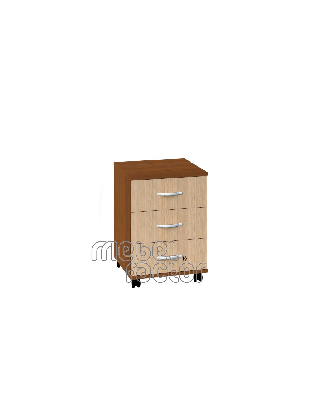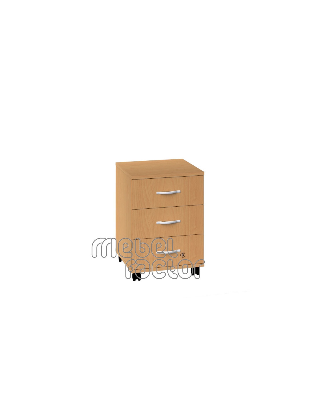 Подвижен офис контейнер с три чекмеджета. Размери 42х50см., Н=58см. Дълбочина на чекмеджето 450мм. Подходящ за съхранение на всички видове офис консумативи. Опция за заключване на горното чекмедже. Изработен от 18мм ламинирано ПДЧ и кант 0,5мм. Декори на ламинирано ПДЧ от фирмения картел. Произведено в България.