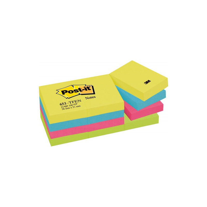 Лепящи листчета Post-it 653TFEN, 38 х 51 мм, 100 листа, неон 120127