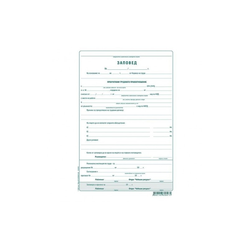 Заповед за прекратяване на трудовите правоотношения 191864